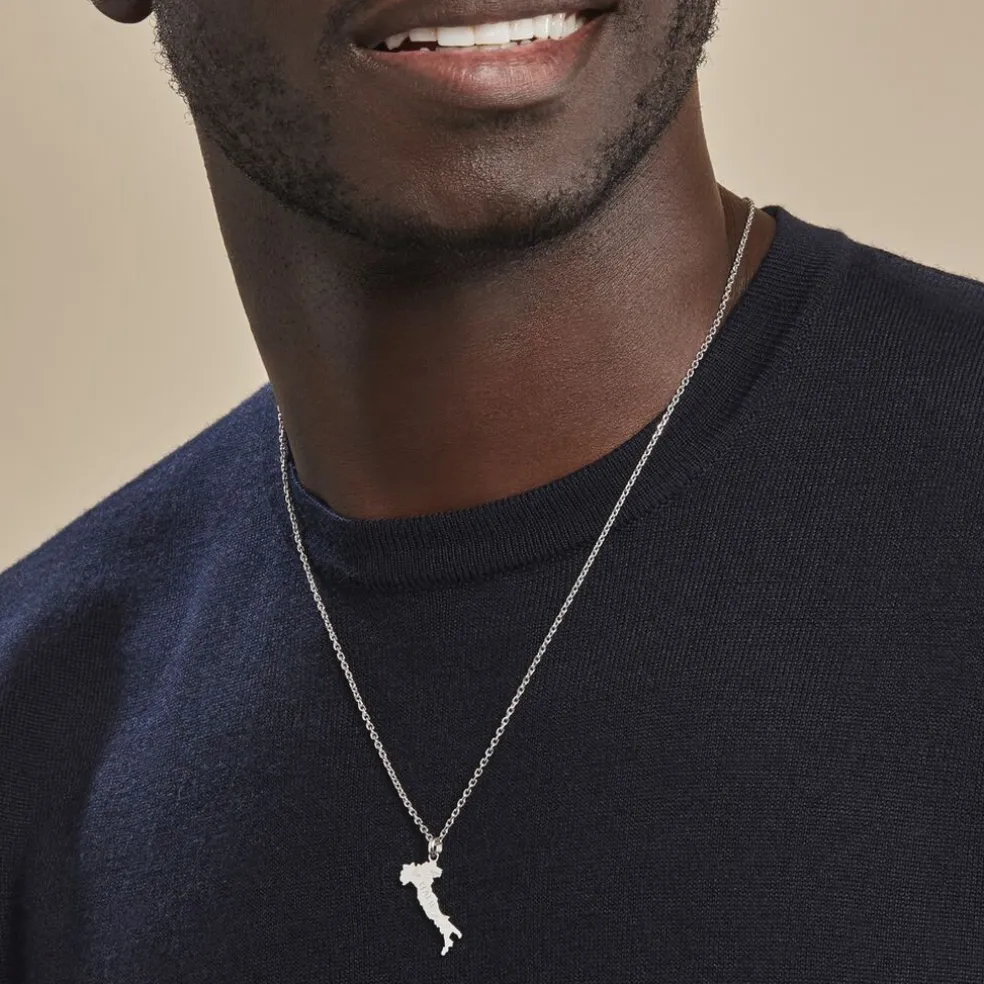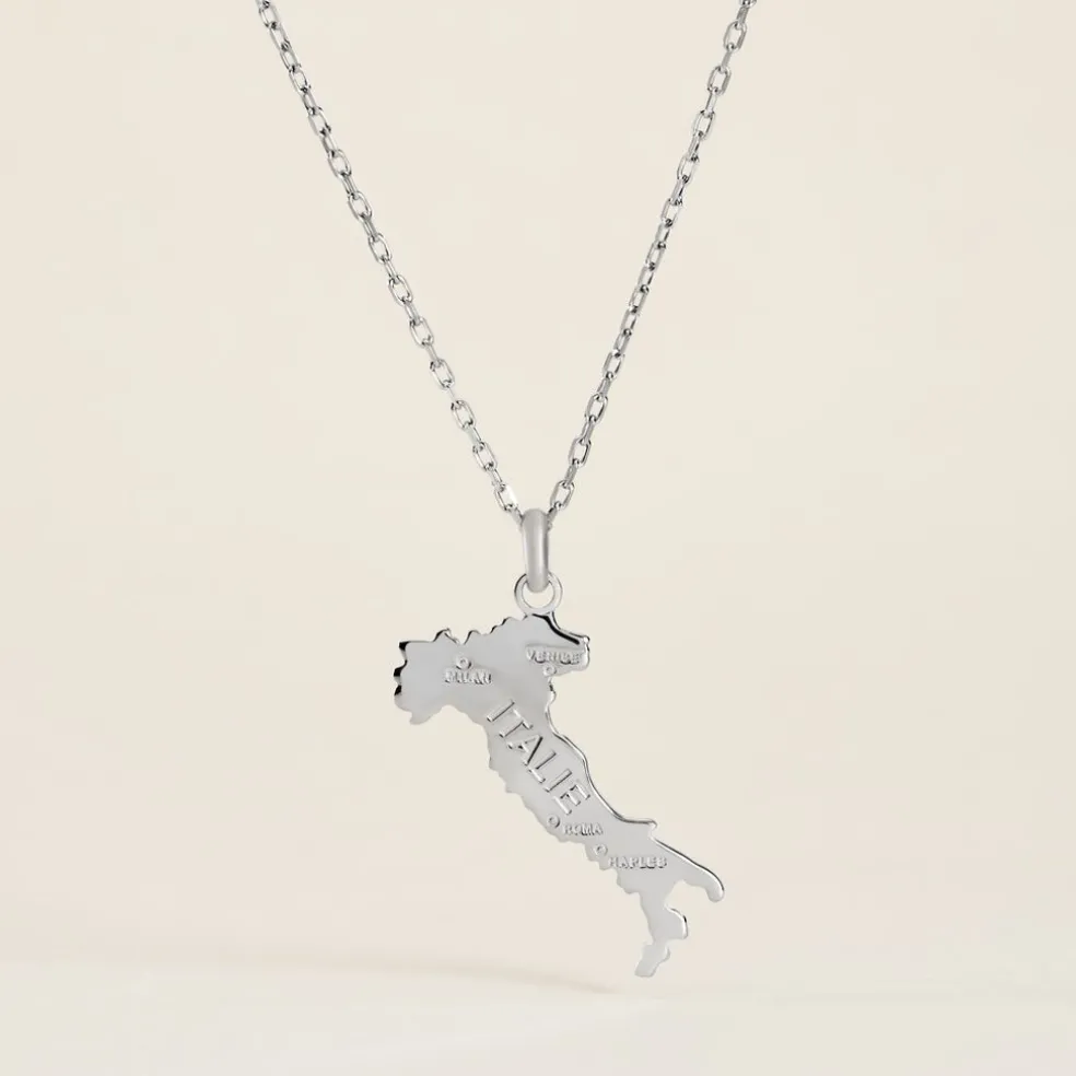 Pendentif Argent Blanc 925/1000 Carte De L’italie