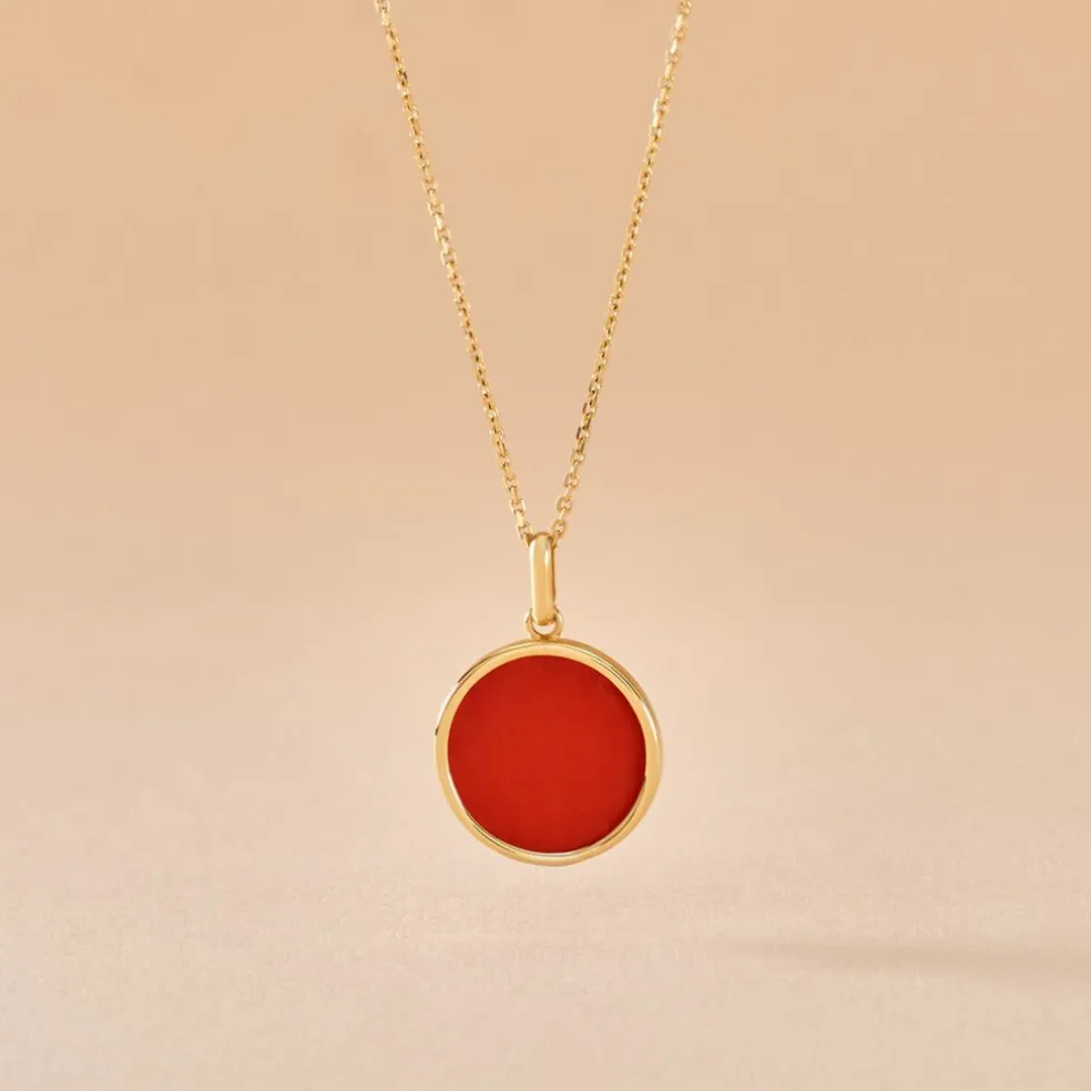 Pendentif Or Jaune 375/1000 Forme Ronde Corail 1.3 Cts