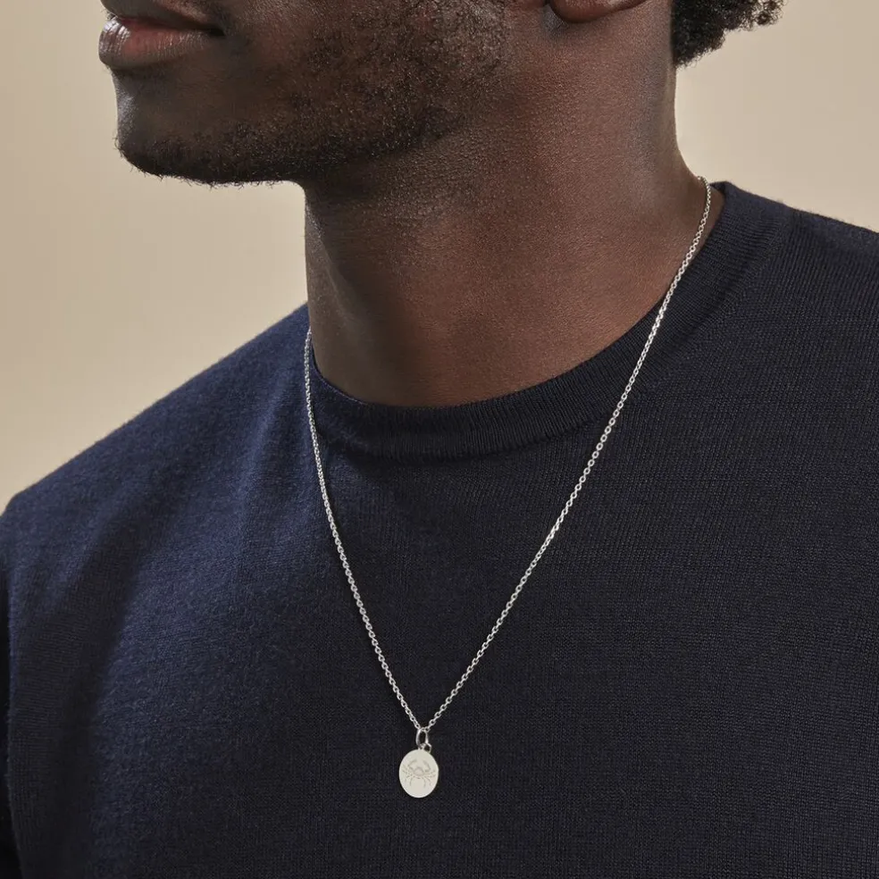 Pendentif Argent Blanc 925/1000 Medaille Ronde Motif Cancer