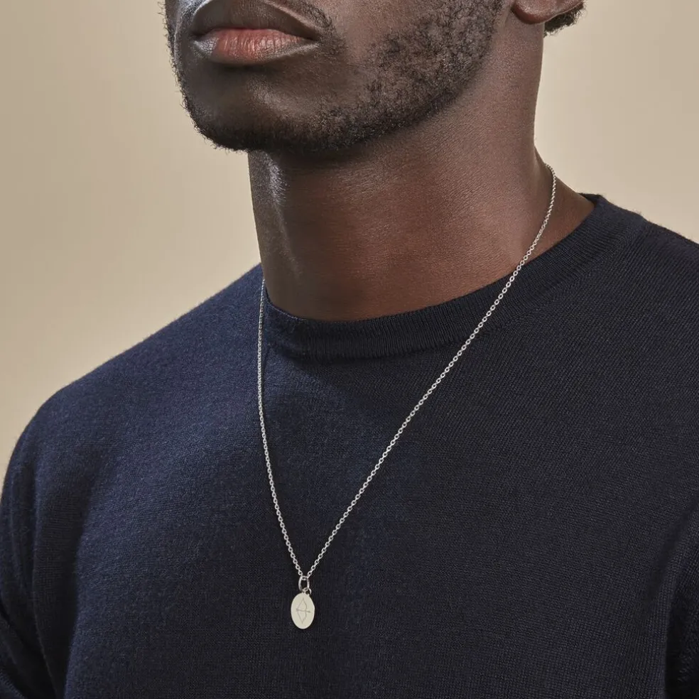 Pendentif Argent Blanc 925/1000 Medaille Ronde Motif Sagittaire