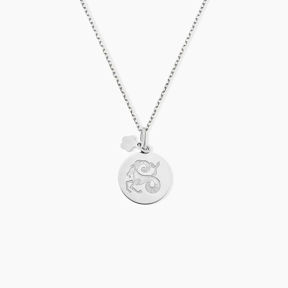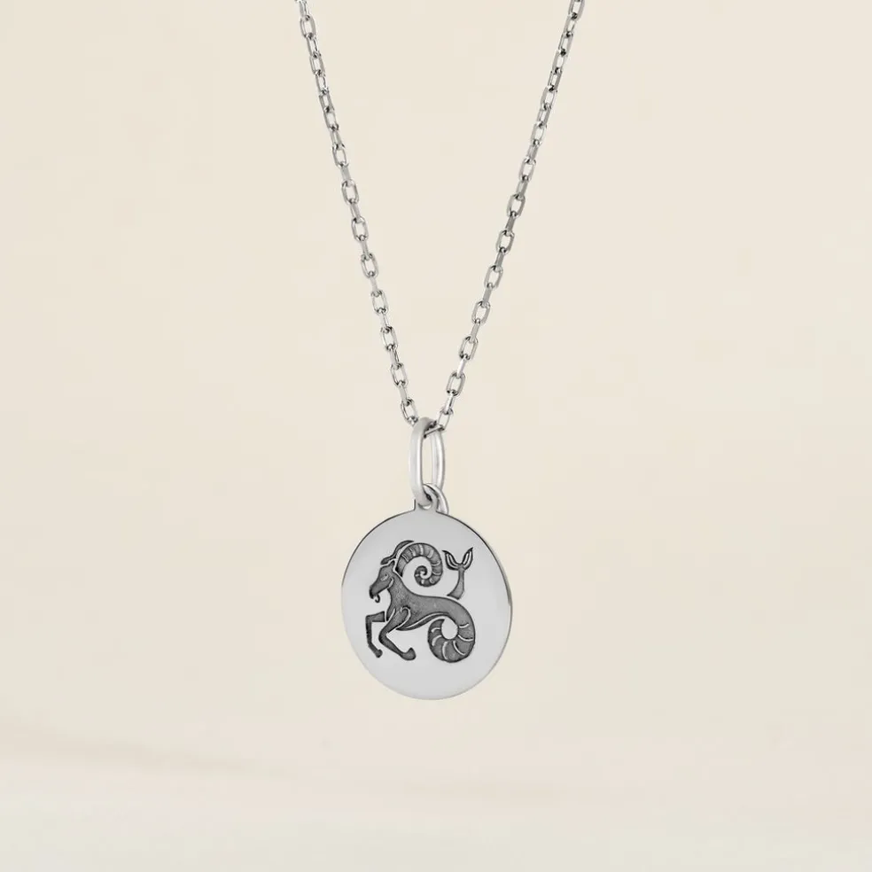 Pendentif Argent Blanc 925/1000 Medaille Ronde Motif Capricorne