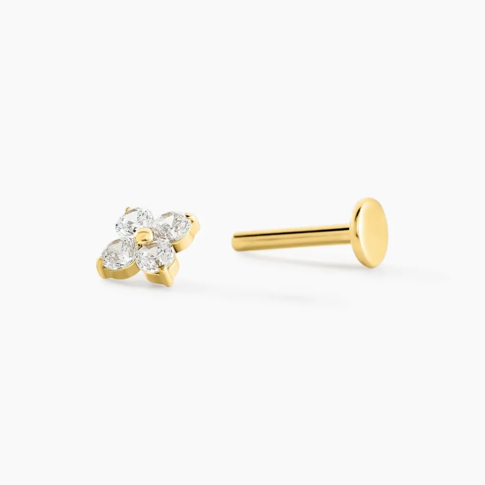 Piercing Titane Doré Oxydes De Zirconium Motif Fleur