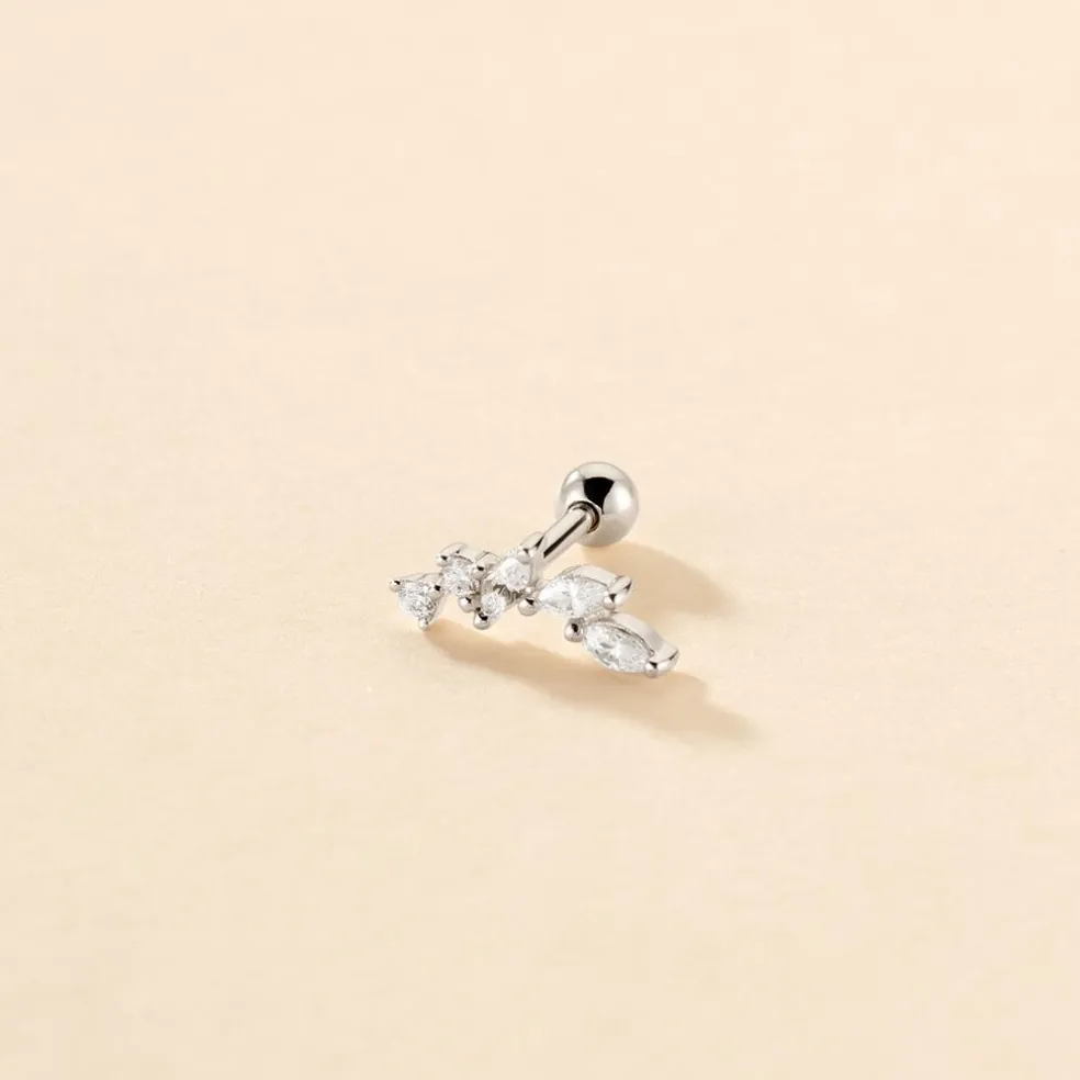 Piercing D’oreille Gauche Unitaire Argent Blanc 925/1000 Feuille Multipierres Oxydes De Zirconium