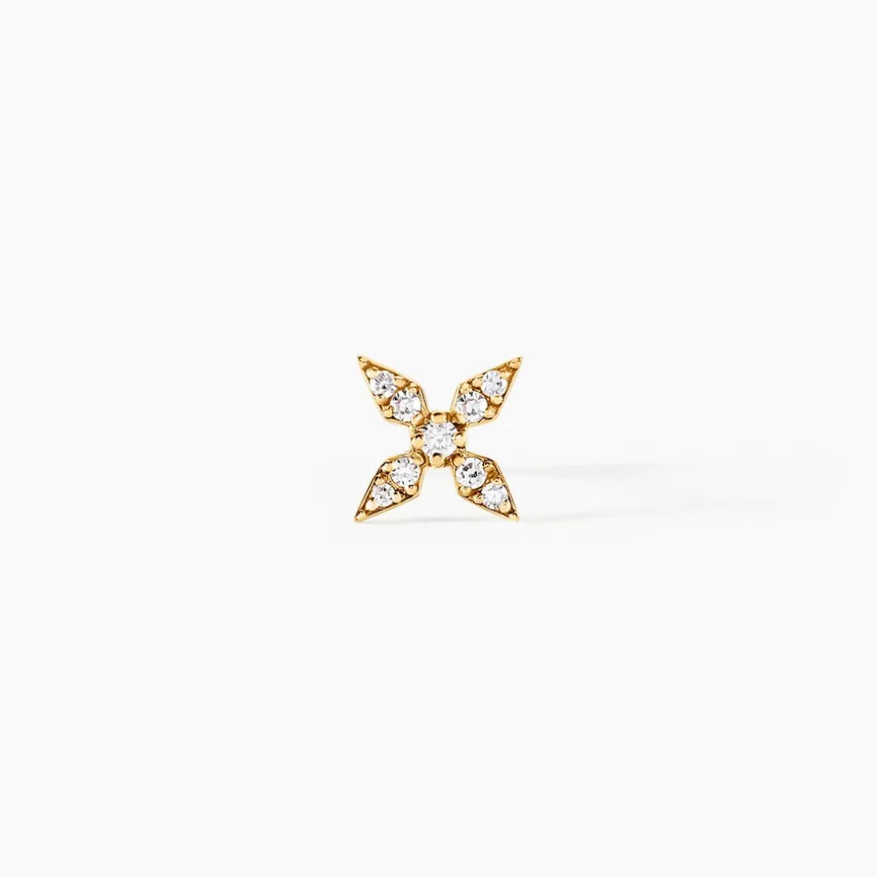 Piercing D’oreille Or Jaune 375/1000 Fleur Pavage Diamants