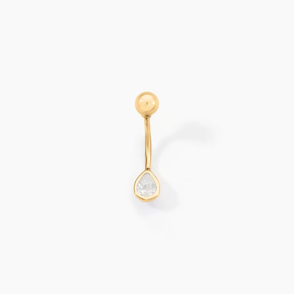 Piercing De Nombril Or Jaune 375/1000 Goutte Oxyde De Zirconium Serti Clos 2.2cm