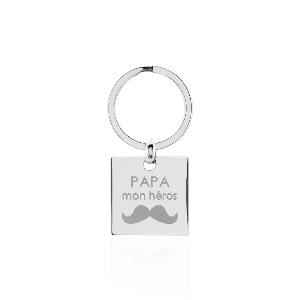 Porte Clef Acier Inoxydable Blanc Forme Carree Message Papa Mon Heros