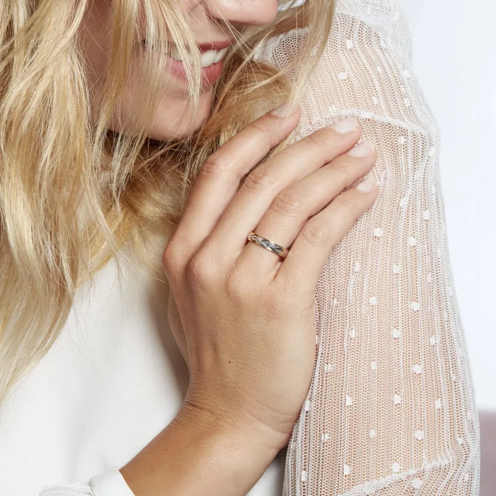 Alliance Or Bicolore Blanc Et Jaune 375/1000 Fantaisie 4mm