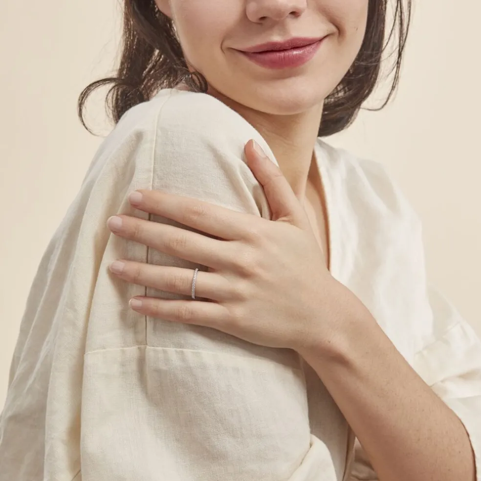 Anneau Argent 925/1000 florence Demi Tour Oxydes De Zirconium Serti Griffes