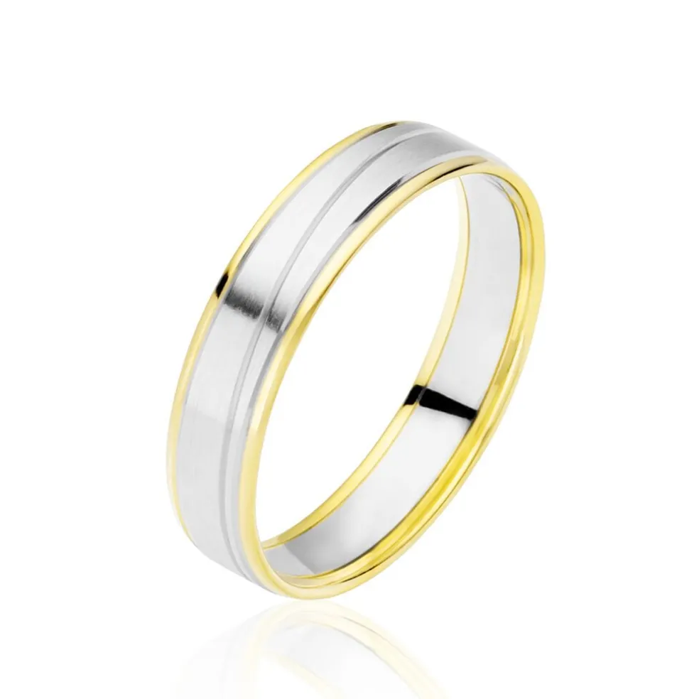Alliance Or Bicolore Blanc Et Jaune 375/1000 Liseret Or Jaune 5mm