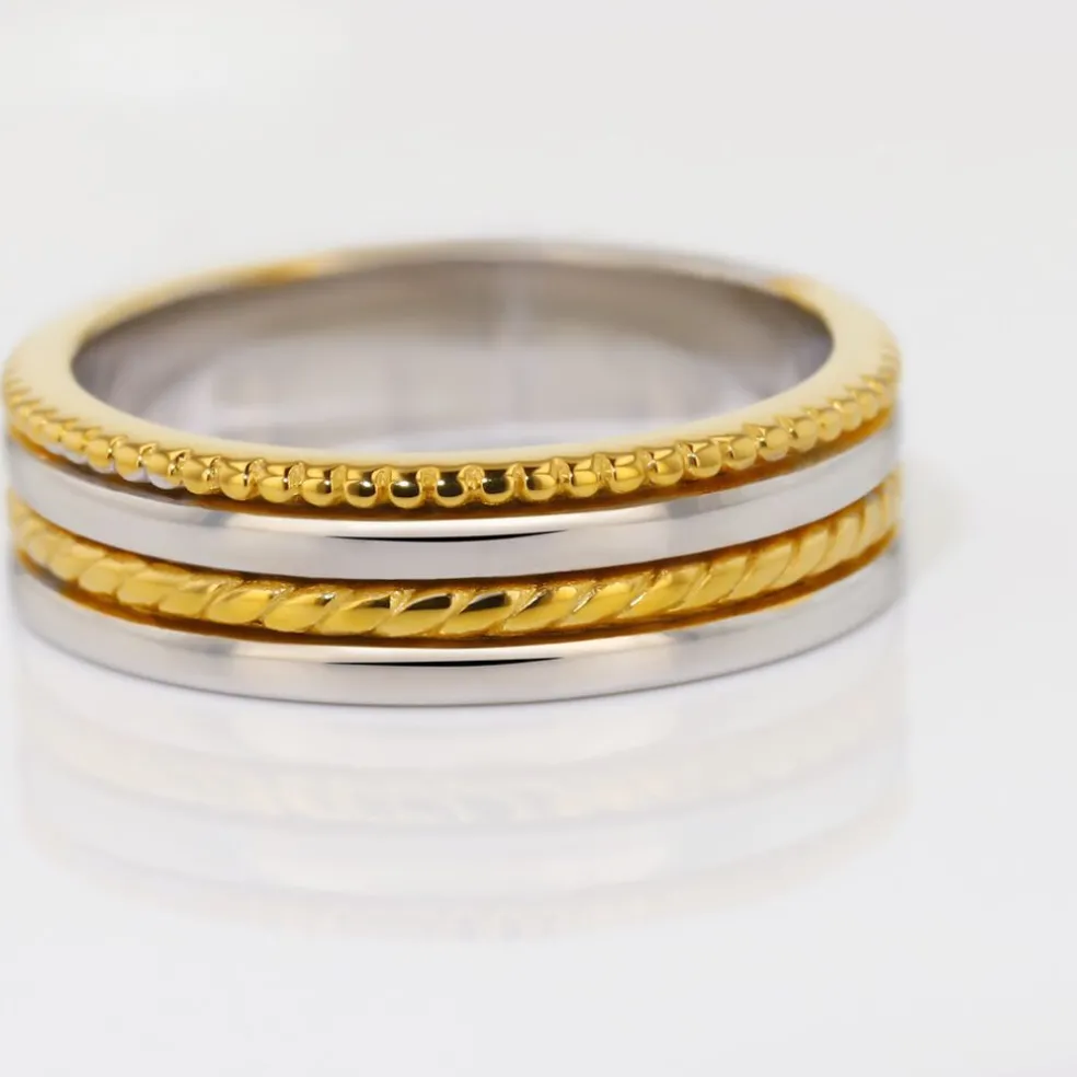 Alliance Argent Bicolore 925/1000 Ruban Effet Perle Et Torsade 5mm