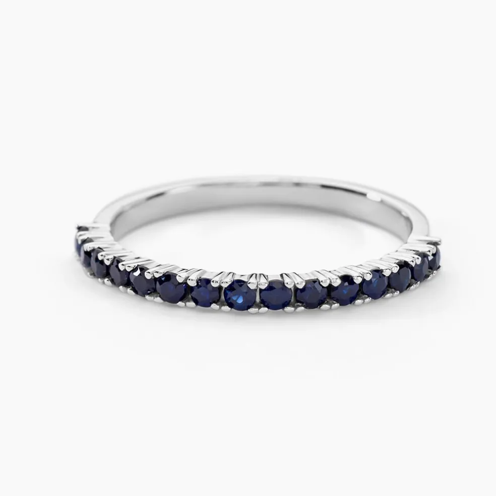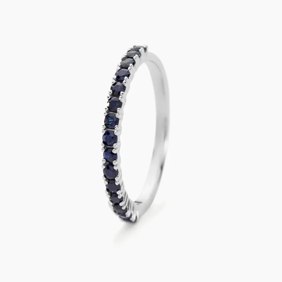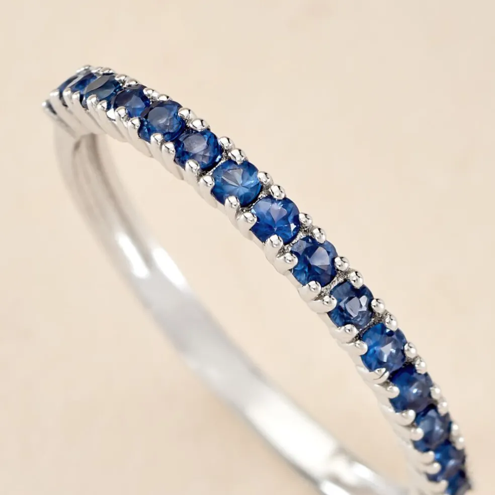 Alliance Or Blanc 750/1000 Saphir Bleu Serti 4 Griffes