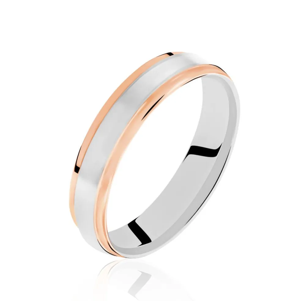 Alliance Or Bicolore 750/1000 Rose Et Blanc Fantaisie Confort 5mm
