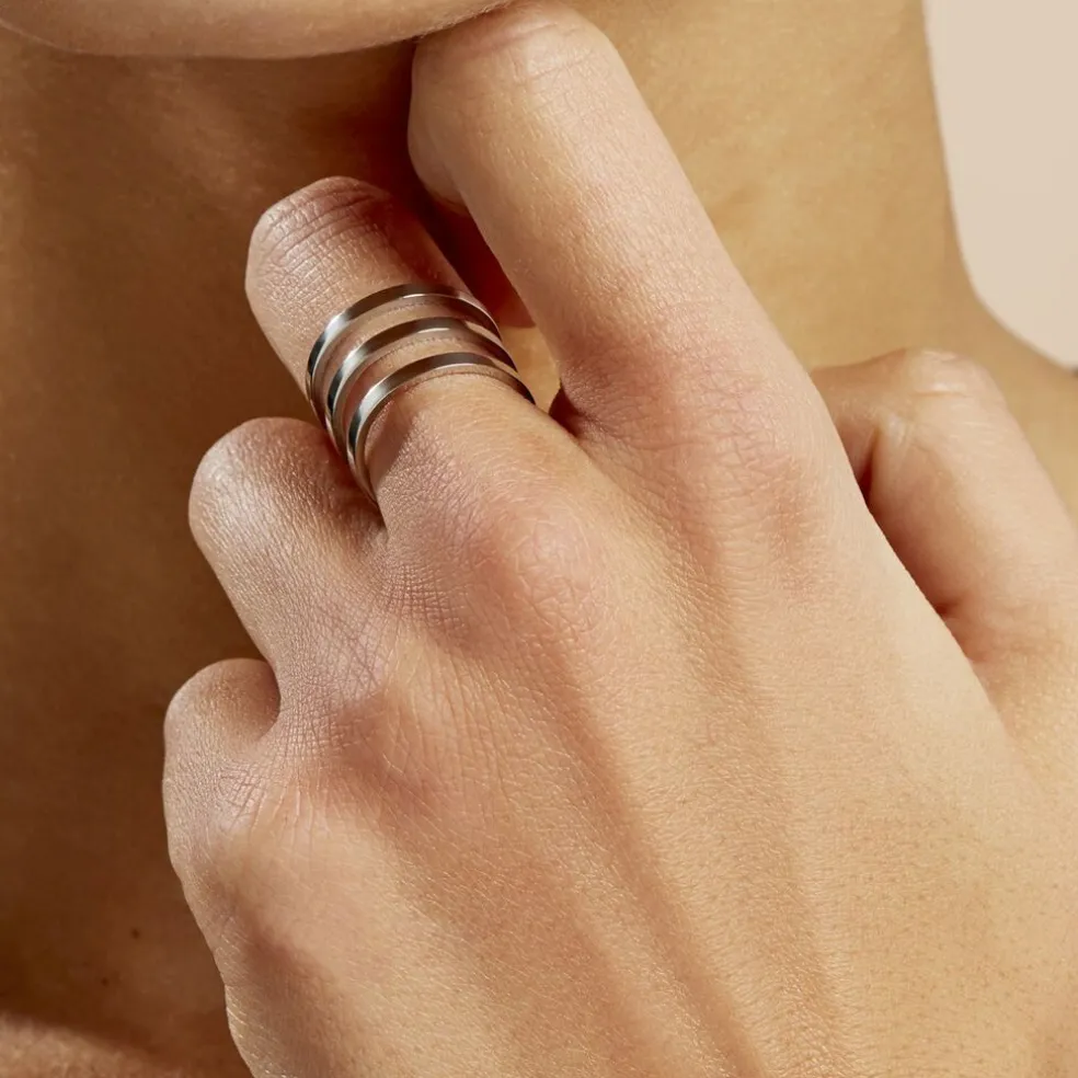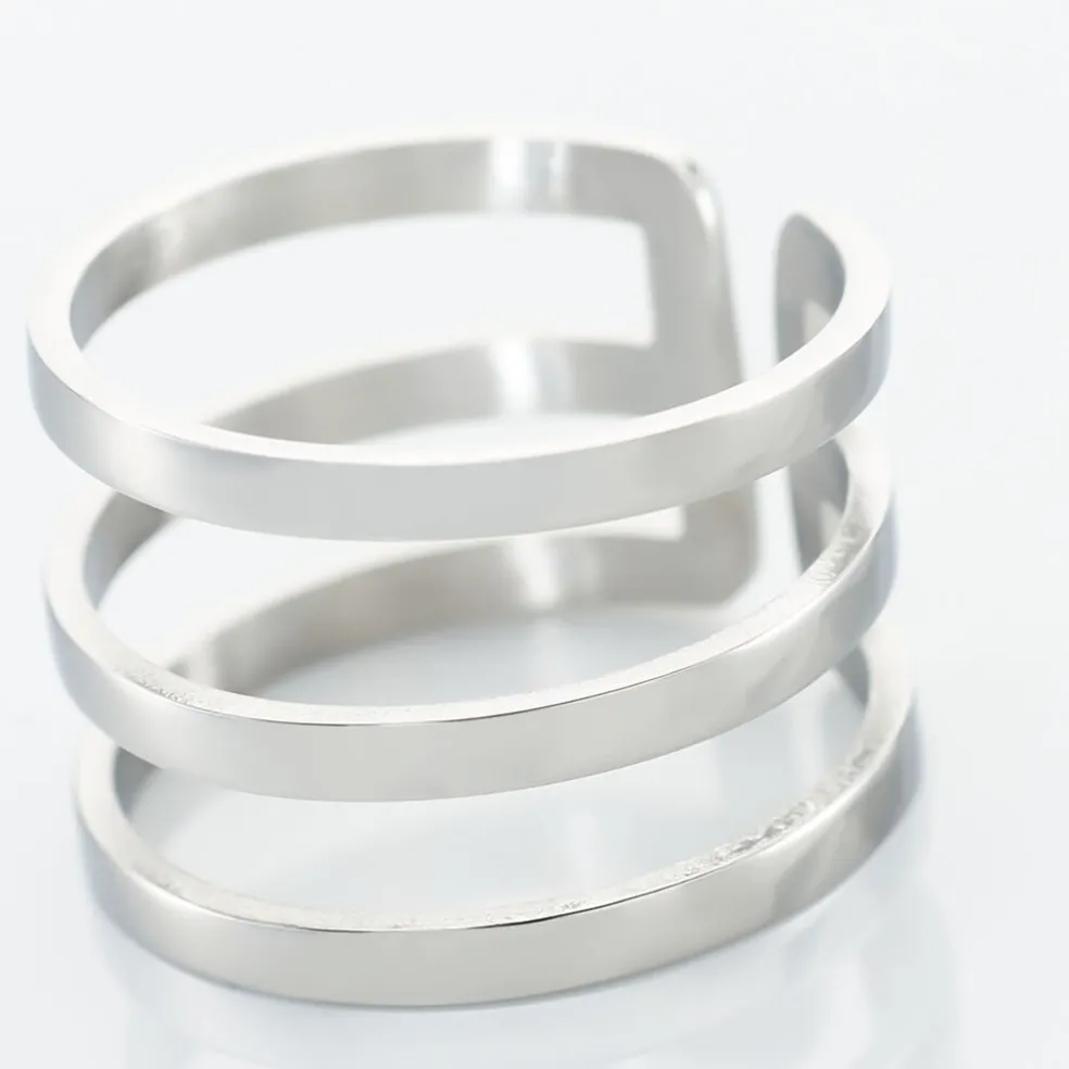 Bague Ajustable Acier Inoxydable Blanc 3 Rangs Ajoures