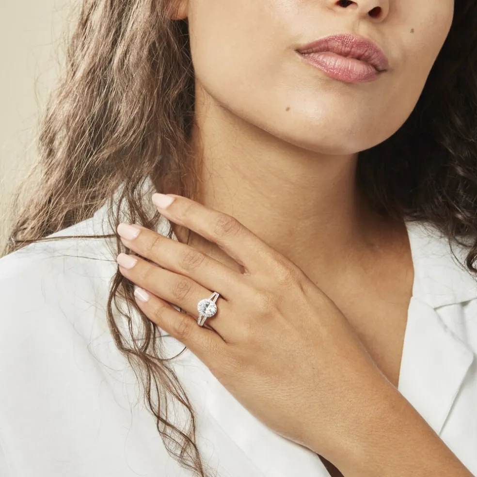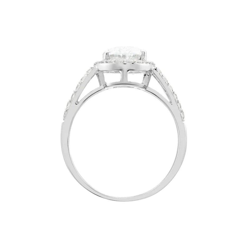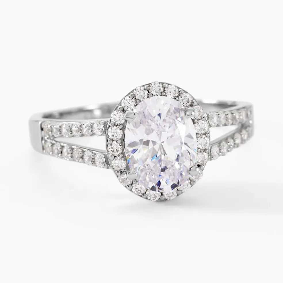 Bague Or Blanc 375/1000 Entourage Double Rangs Oxydes De Zirconium