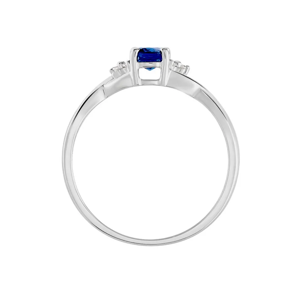 Bague Or Blanc 375/1000 Saphir Central Serti 4 Griffes Corps De Bague Entrelace Diamants