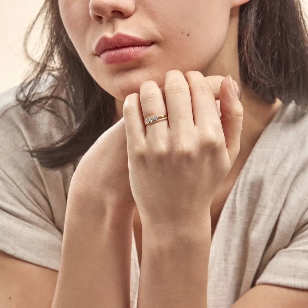 Bague Or Jaune 375/1000 Trilogie Pavage Oxydes De Zirconium