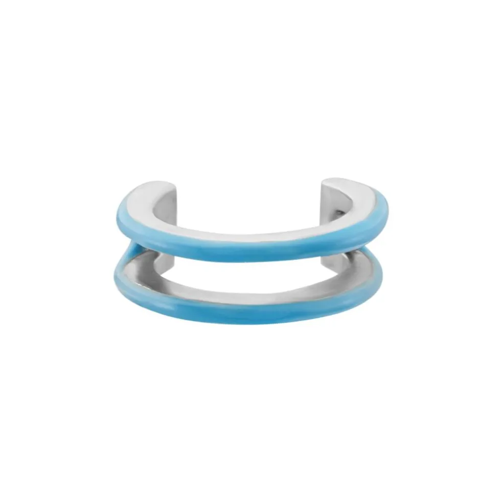 Bague D’oreille Unitaire Argent Blanc 925/1000 Double Anneaux Email Bleu