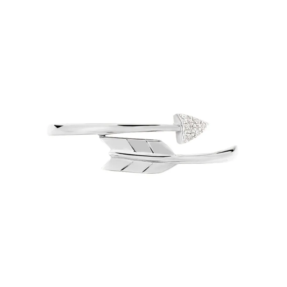 Bague Or Blanc 375/1000 Forme Fleche Pavage Diamants