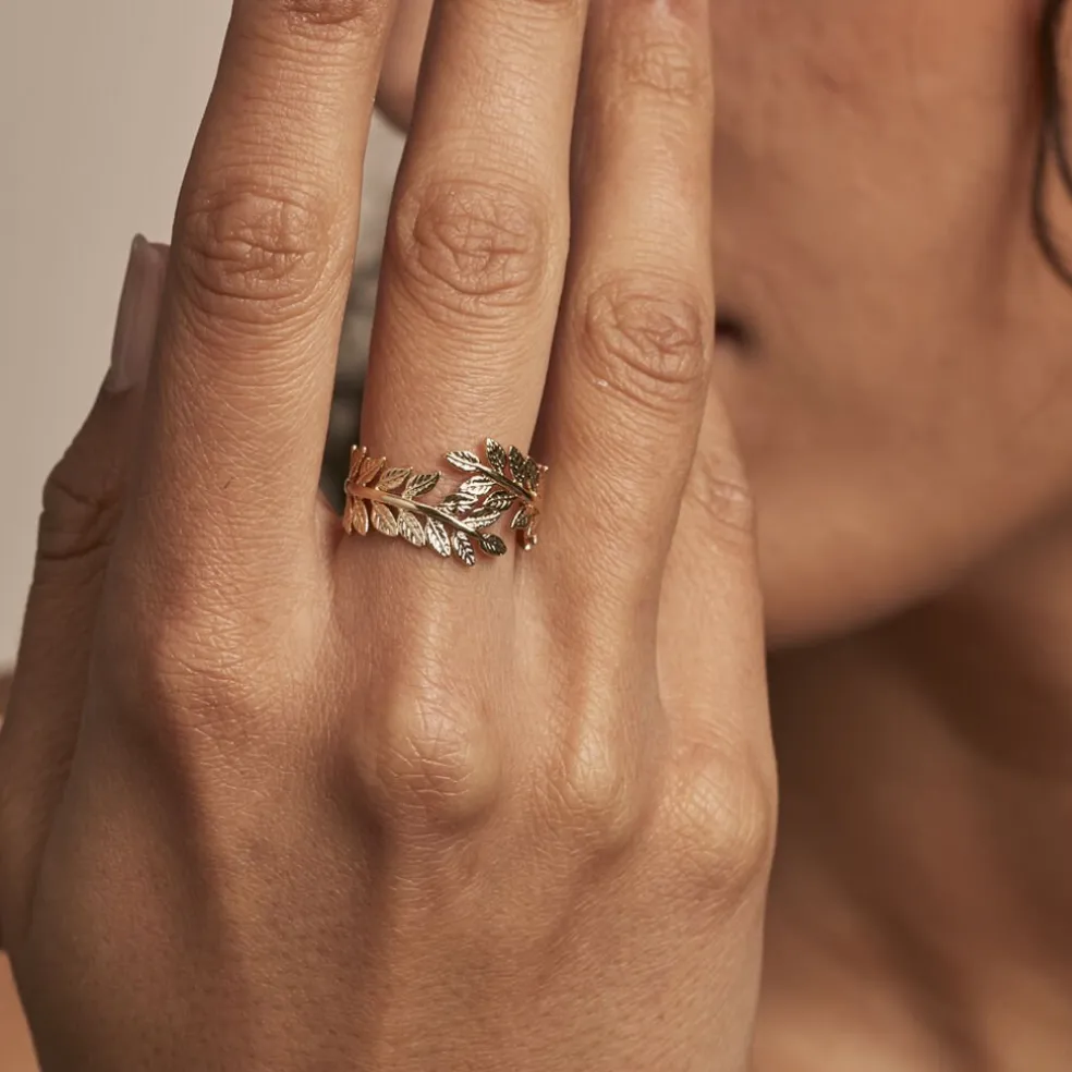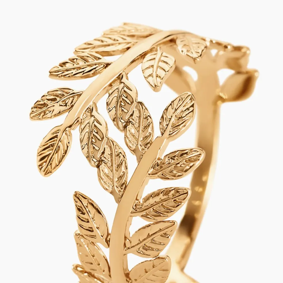 Bague Plaque Or Jaune Forme Feuille Croisee