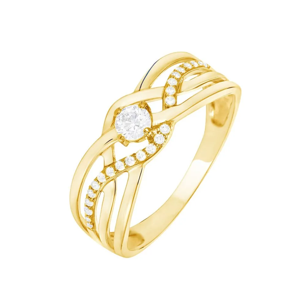 Bague Or Jaune 375/1000 Vagues Entrelacees Oxydes De Zirconium