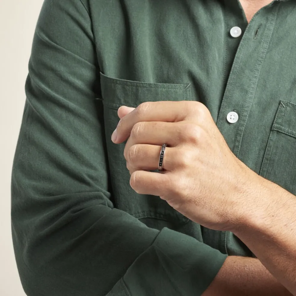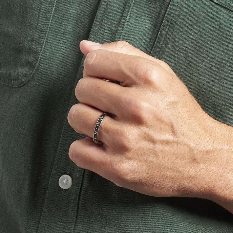 Bague Argent Blanc 925/1000 Email Noir Chiffres Romains