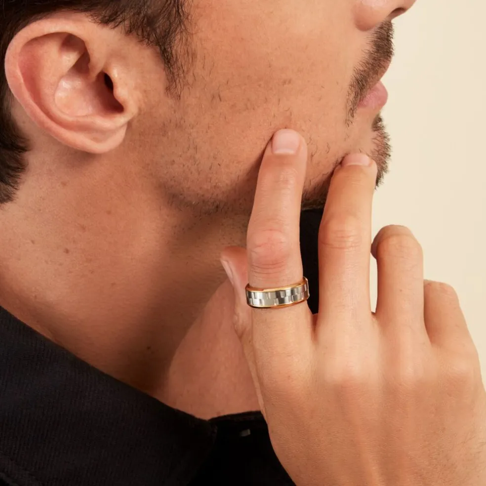 Bague Jourdan Oahu Acier Blanc Et Jaune Jh120013r