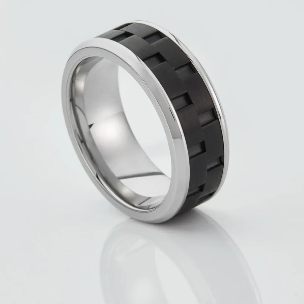 Bague Jourdan Oahu Acier Blanc Et Noir Jh120012r