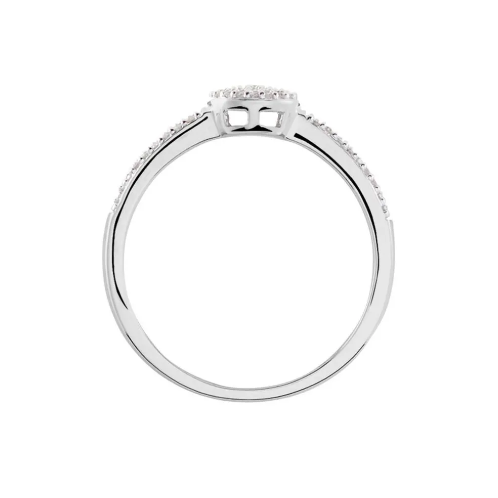 Bague Or Blanc 375/1000 Multipierre Accompagne Rond Pavage Diamants