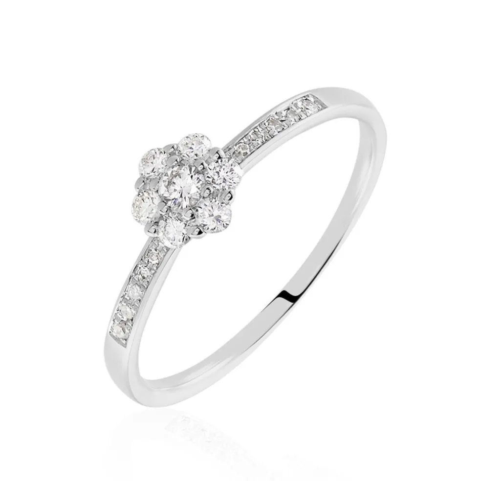 Bague Or Blanc 375/1000 Magnolia Pavage Diamants 0.298cts