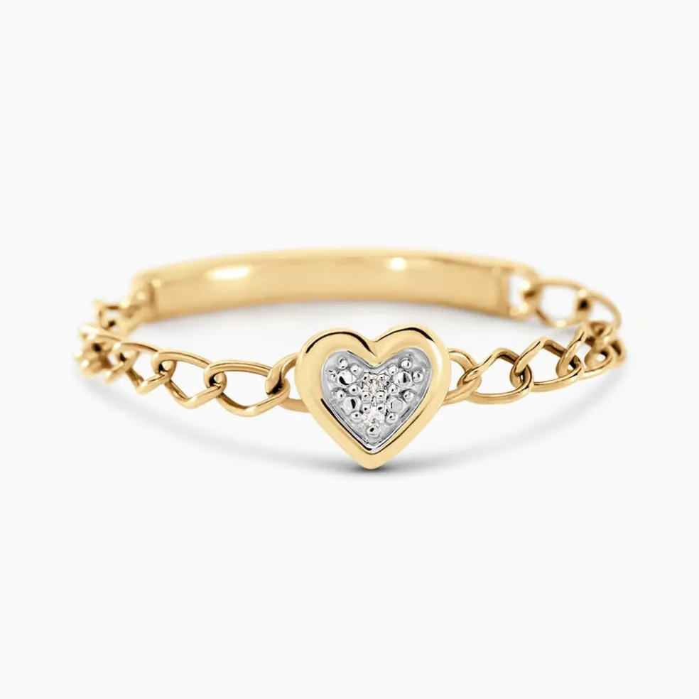 Bague Chaine Or Jaune 375/1000 Coeur Diamants 0.004cts Illusion Maille Gourmette