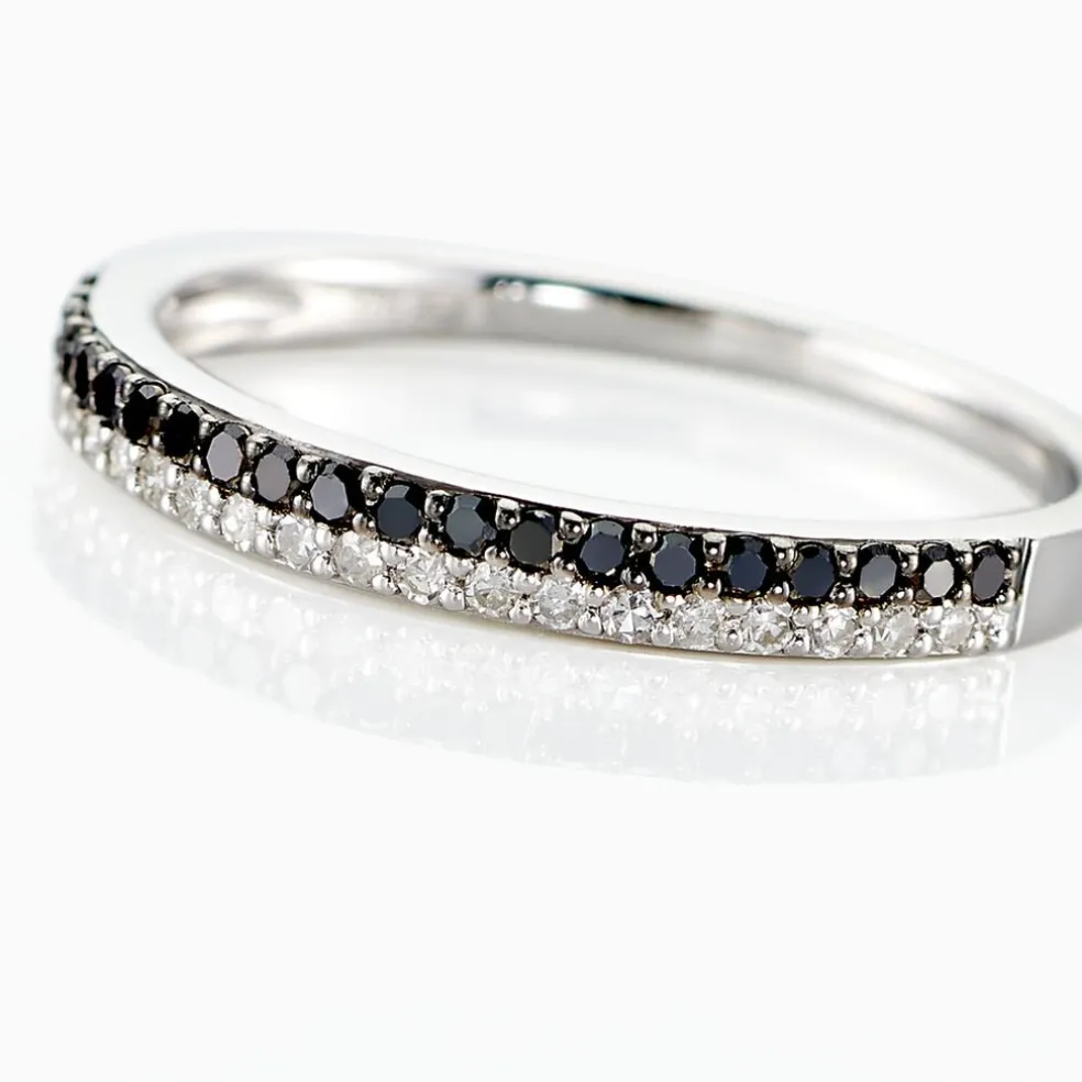 Bague Or Blanc 375/1000 Diamants Blancs Et Diamants Noirs