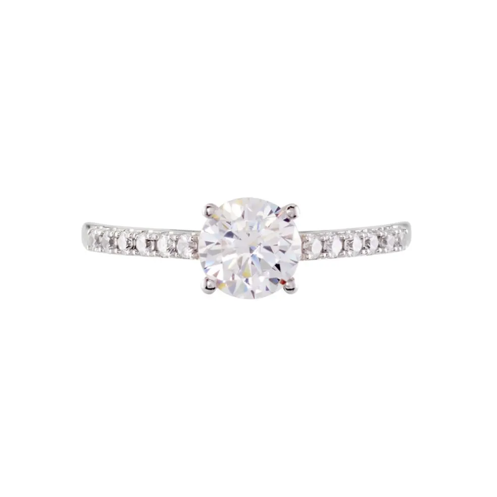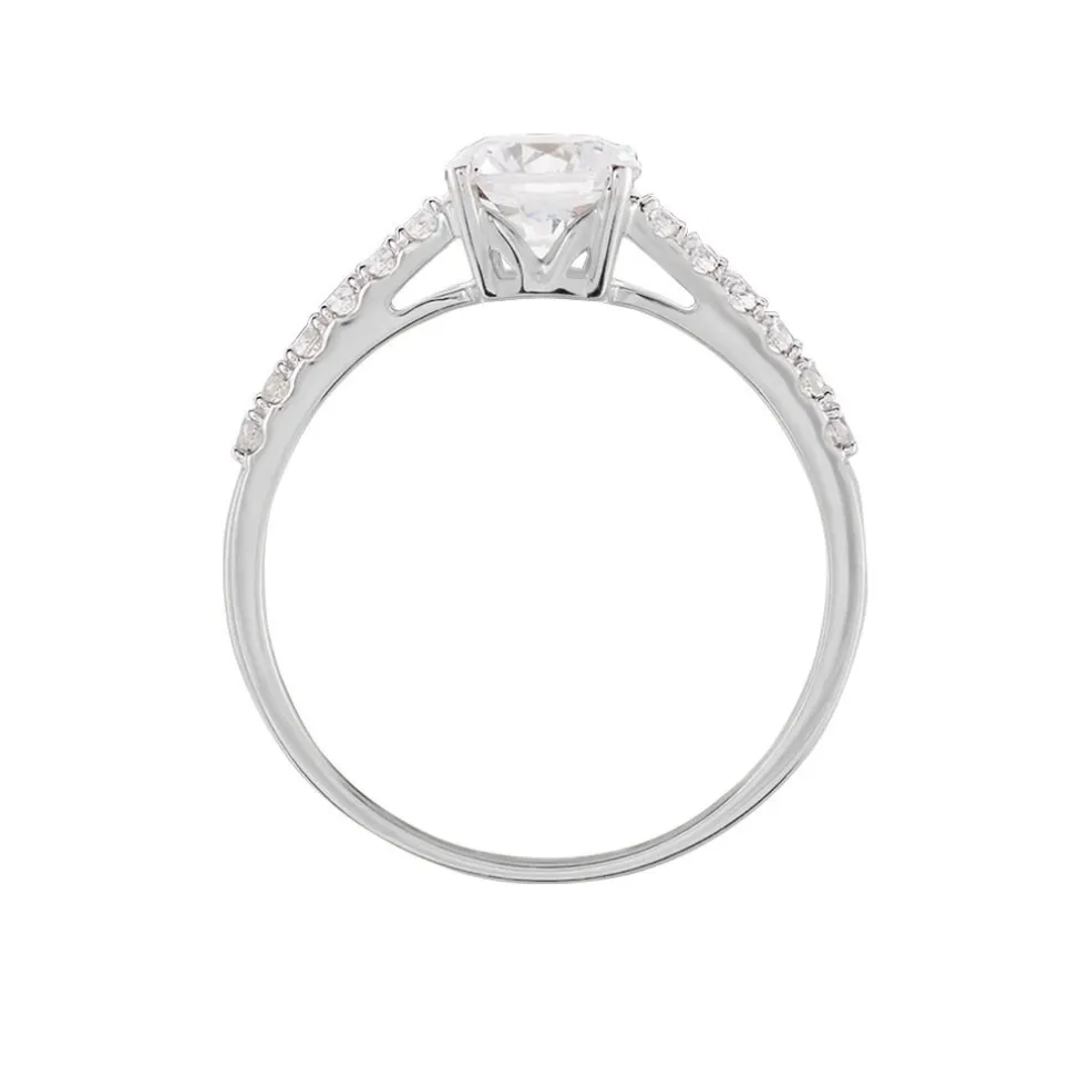 Bague Or Blanc 375/1000 Oxyde De Zirconium Central Accompagne D’oxydes De Zirconium