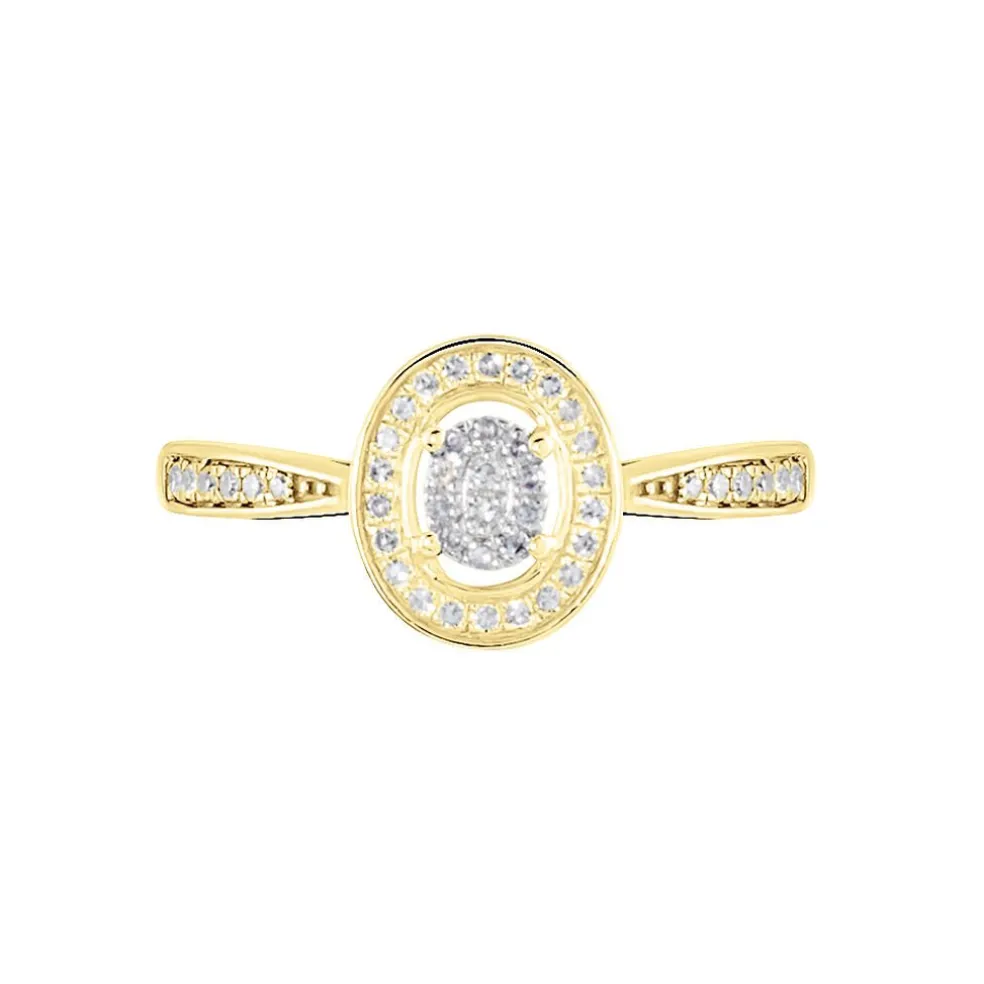 Bague Or Jaune 375/1000 Multipierre Accompagne Pavage Diamants