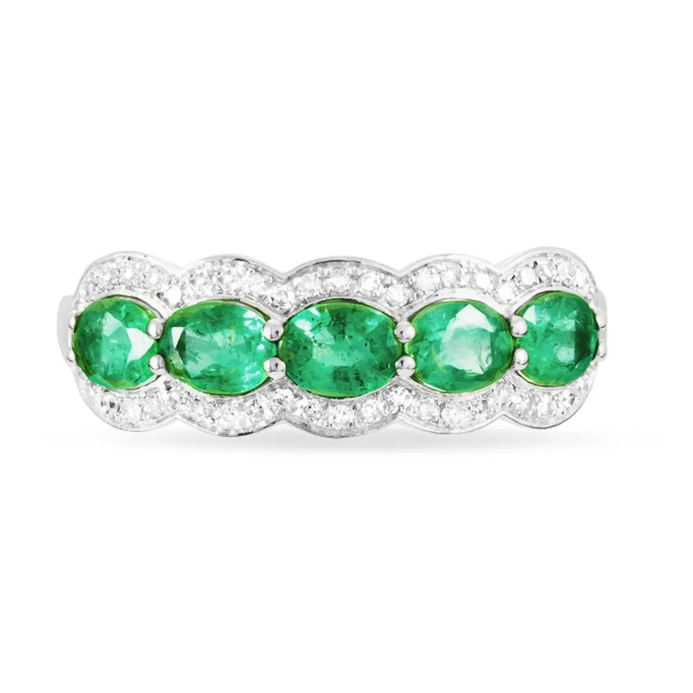 Bague Or Blanc 750/1000 Emeraudes Et Diamants