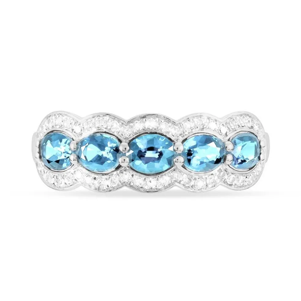 Bague Or Blanc 375/1000 Topazes Bleues Suisse Et Diamants