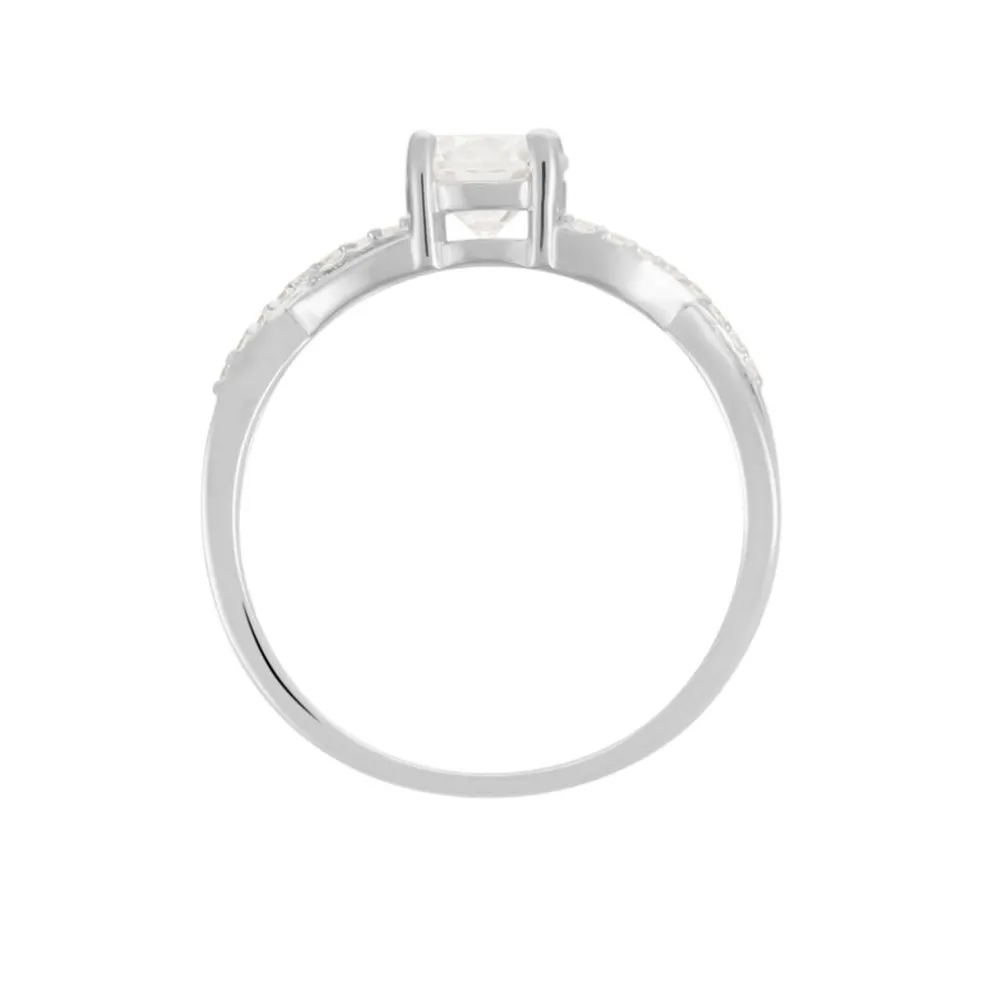 Bague Argent Blanc 925/1000 Oxyde De Zirconium Central Et Oxydes De Zirconium Entrelaces Sur Corps De Bague