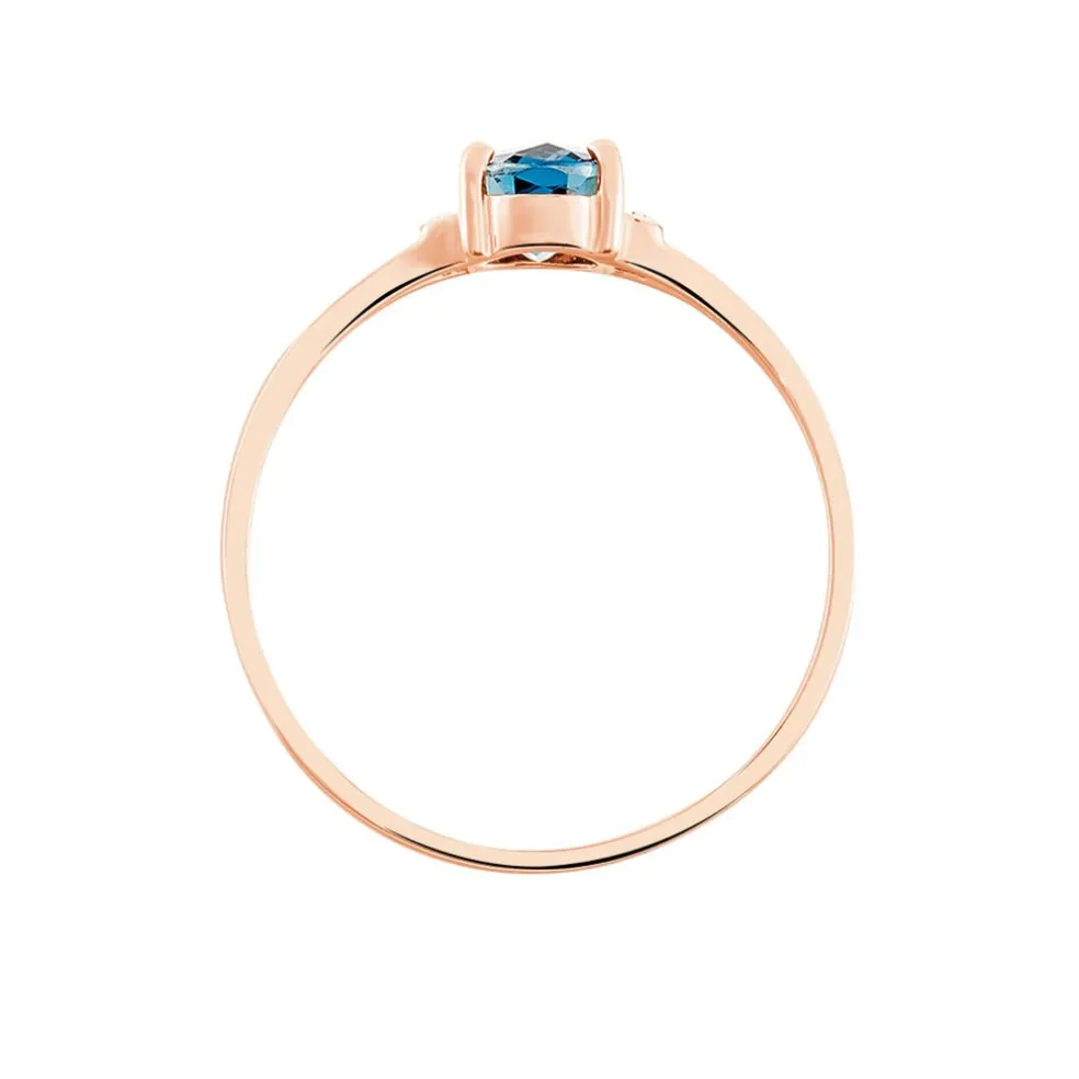 Bague Or Rose 375/1000topaze London Blue Centrale Forme Ovale Taillee Briolette Accompagnee Oxydes De Zirconium