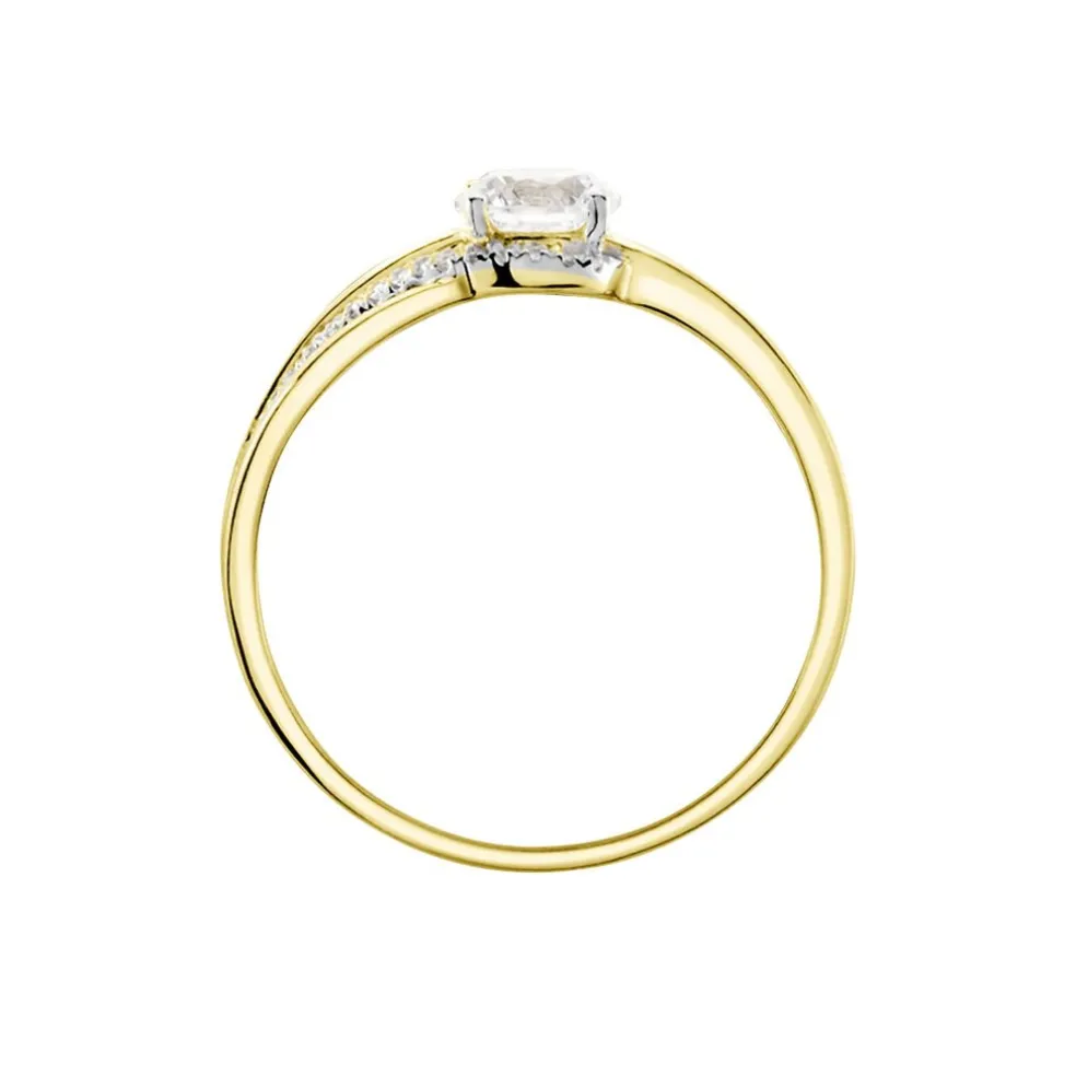 Bague Or Jaune 375/1000 Oxyde De Zirconium Blanc Serti Griffes Accompagné Oxydes Et Vagues