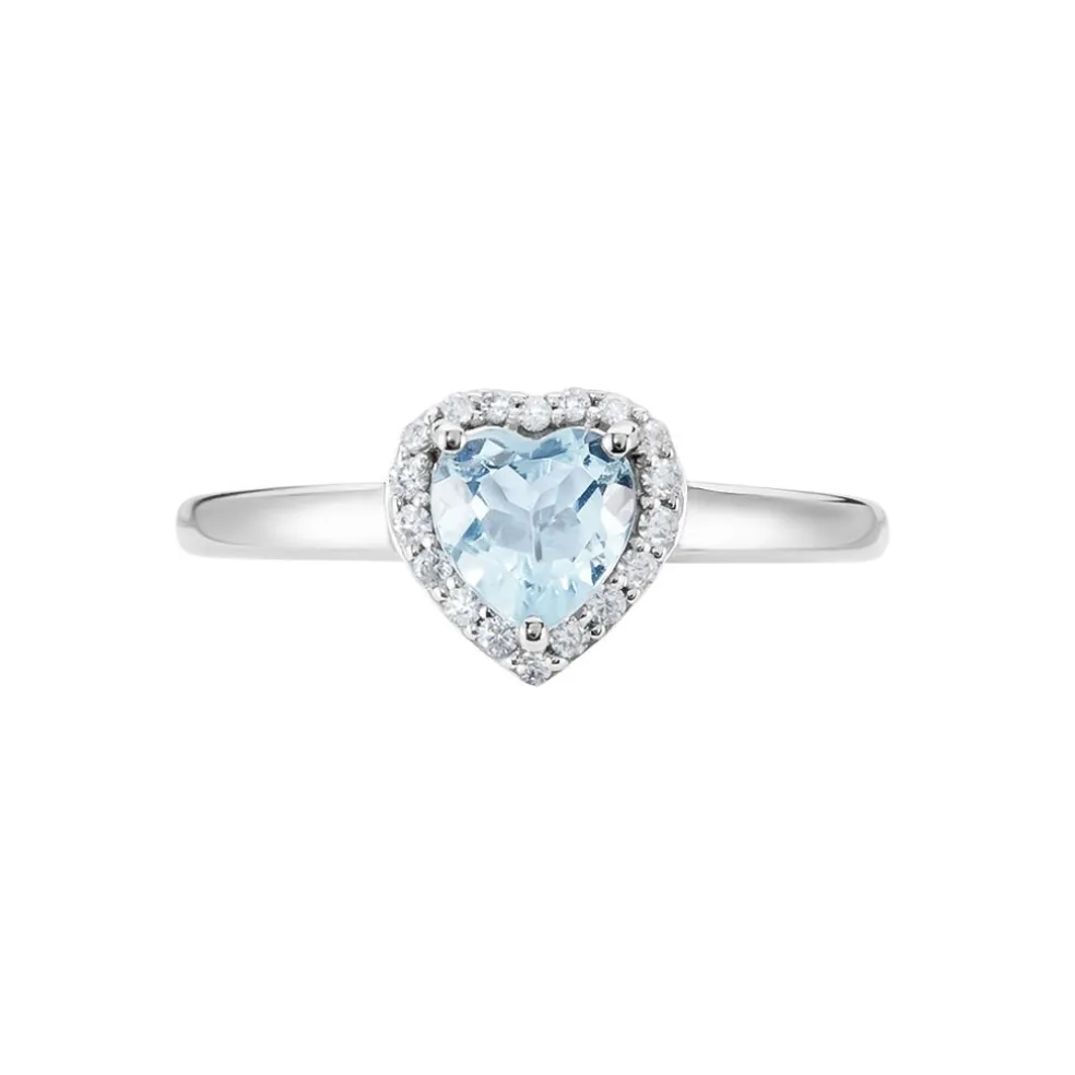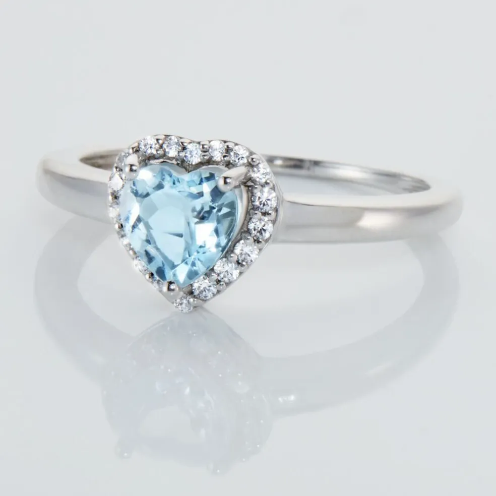 Bague Or Blanc 375/1000 C艙ur Topaze Sky Blue 1ct Serti 3 Griffes