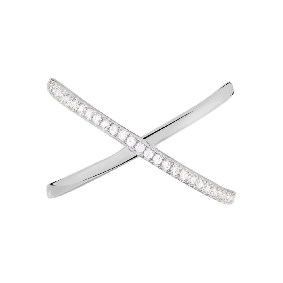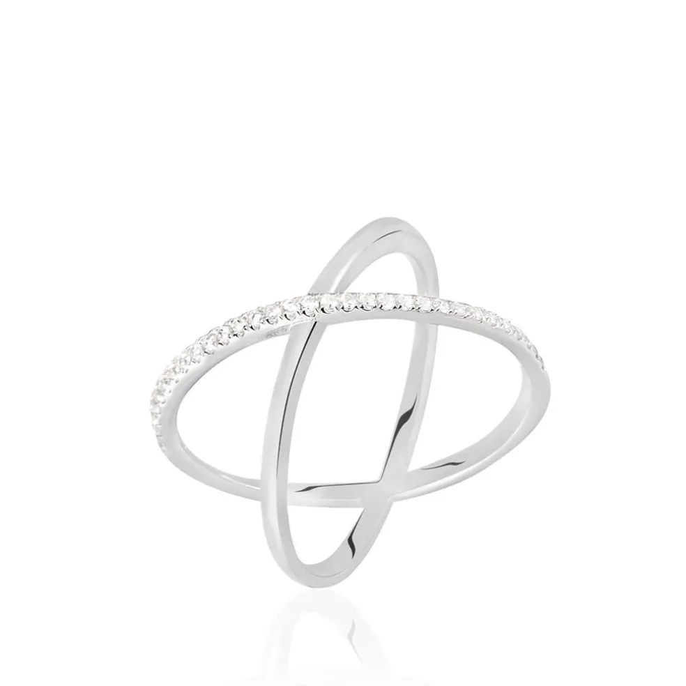 Bague Argent Blanc 925/1000 Deux Anneaux Croises Oxydes De Zirconium