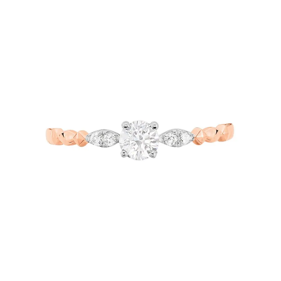 Bague Or Rose 375/1000 Solitaire Oxyde De Zirconium Accompagne Oxydes De Zirconium Taille Navette Finition Perlee