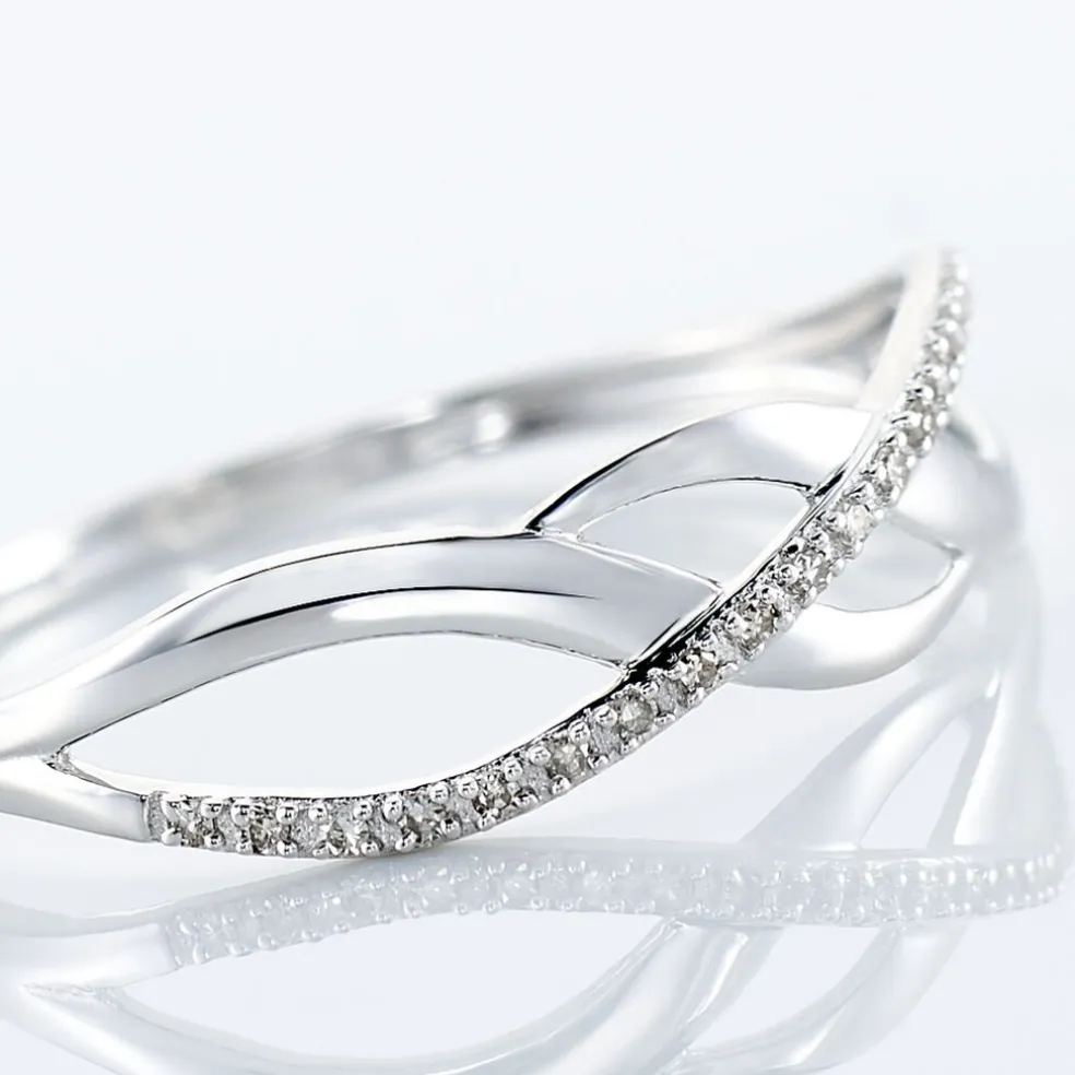 Bague Or Blanc 375/1000 Et Diamants Entrelaces