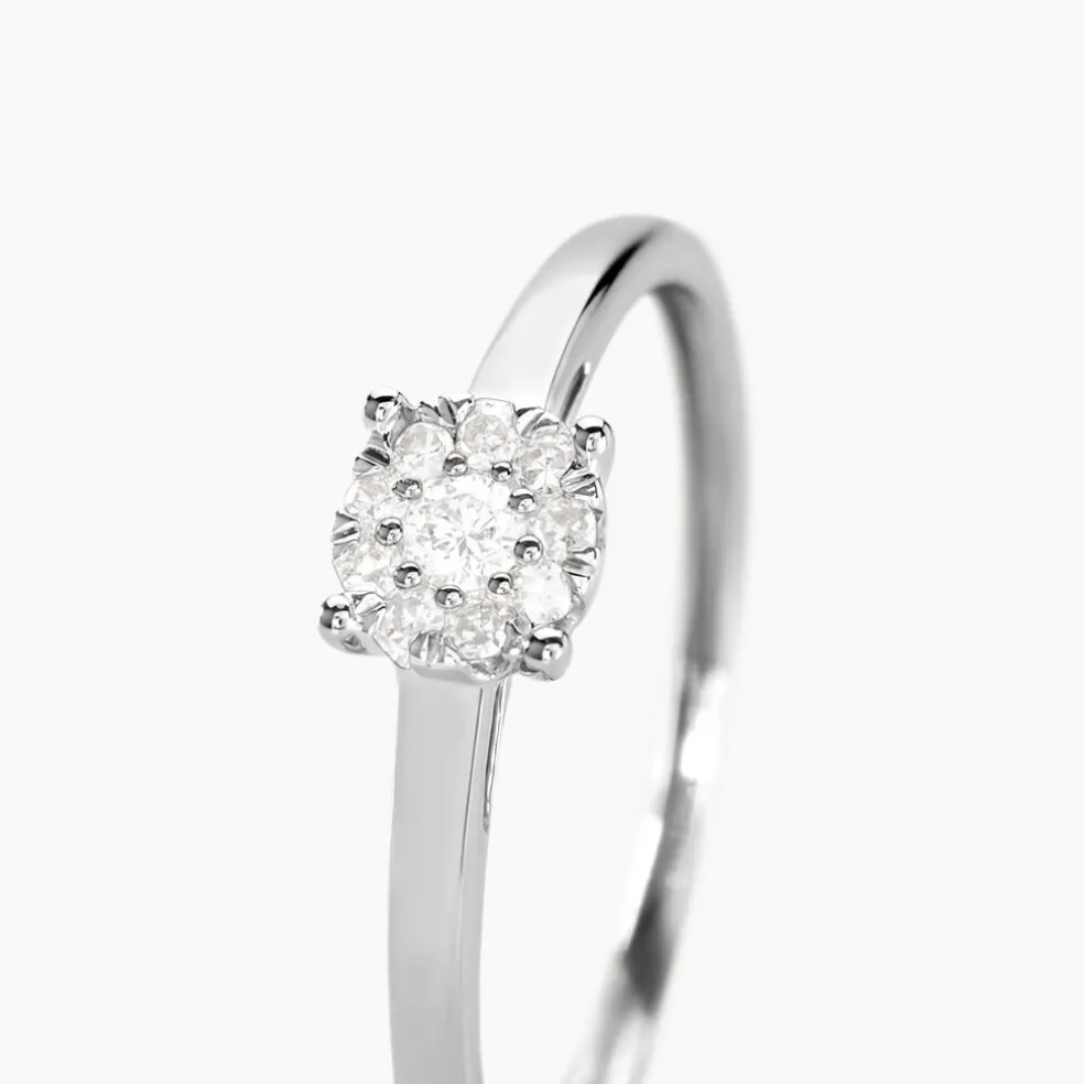 Bague Or Blanc 375/1000 Multipierres Diamants 0.1cts