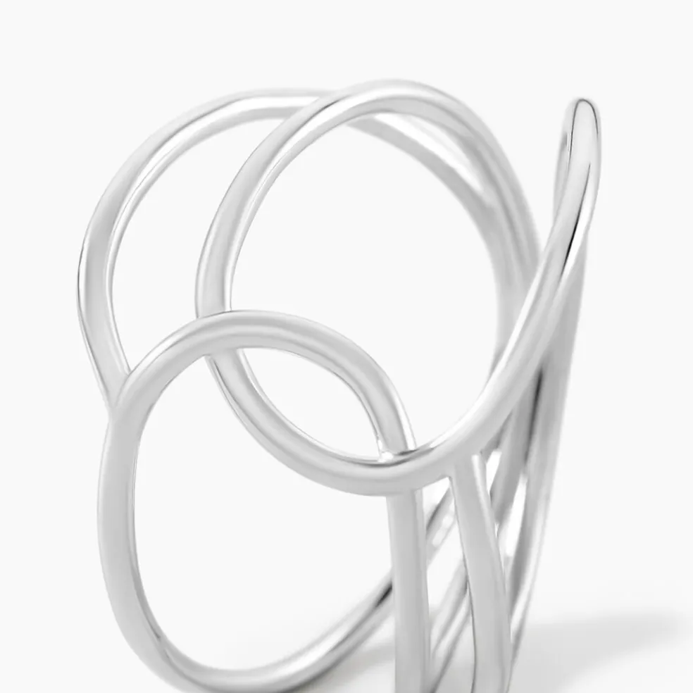 Bague Argent Blanc 925/1000 Entrelacee Multifil Incurve
