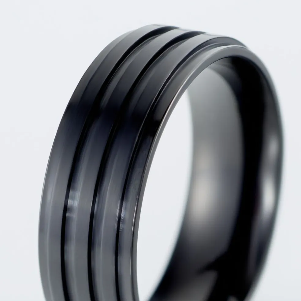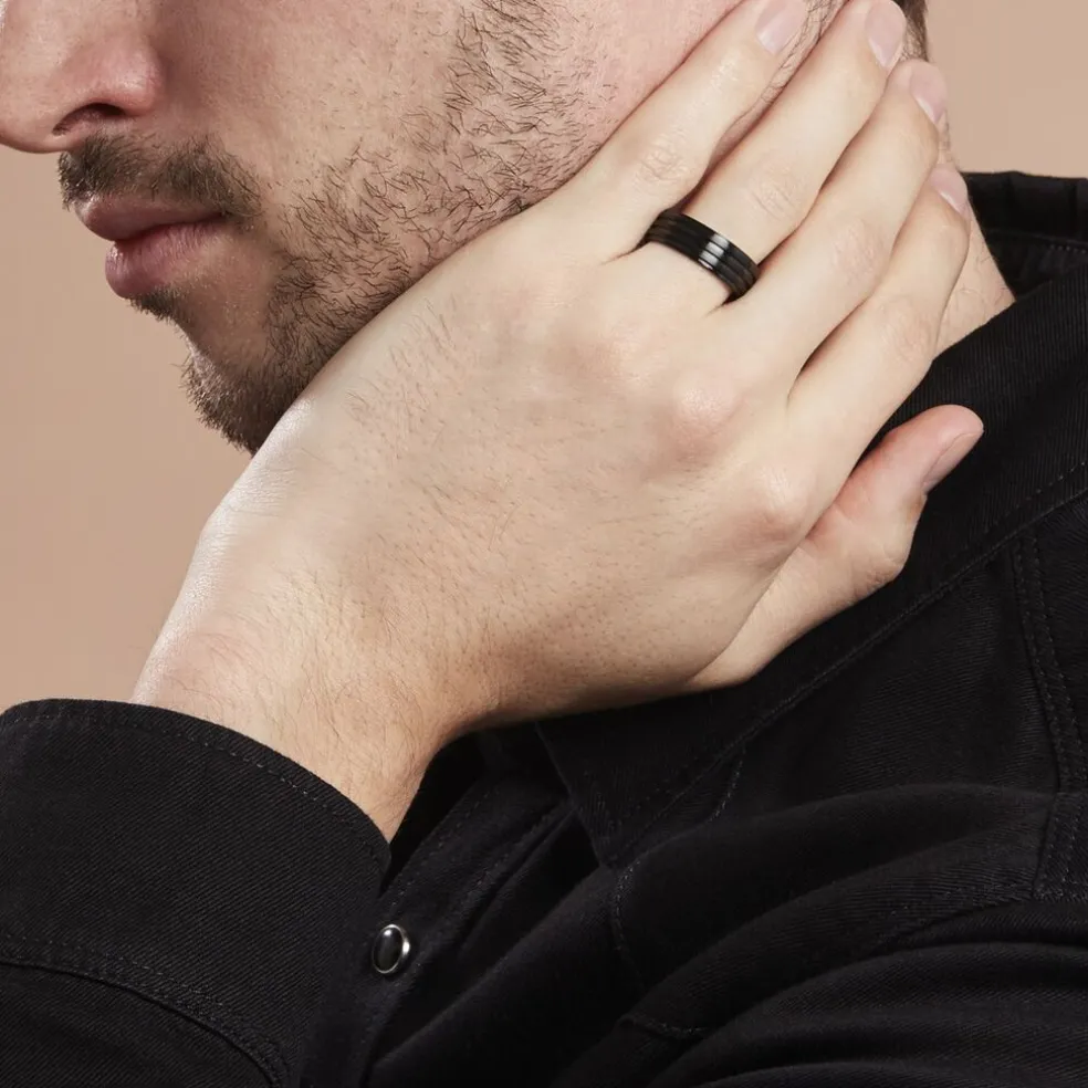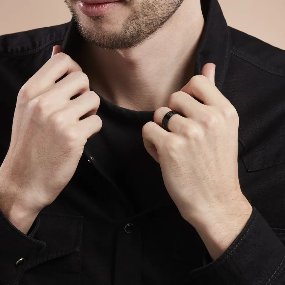 Bague Acier Inoxydable Noir Rayures Effet Mat