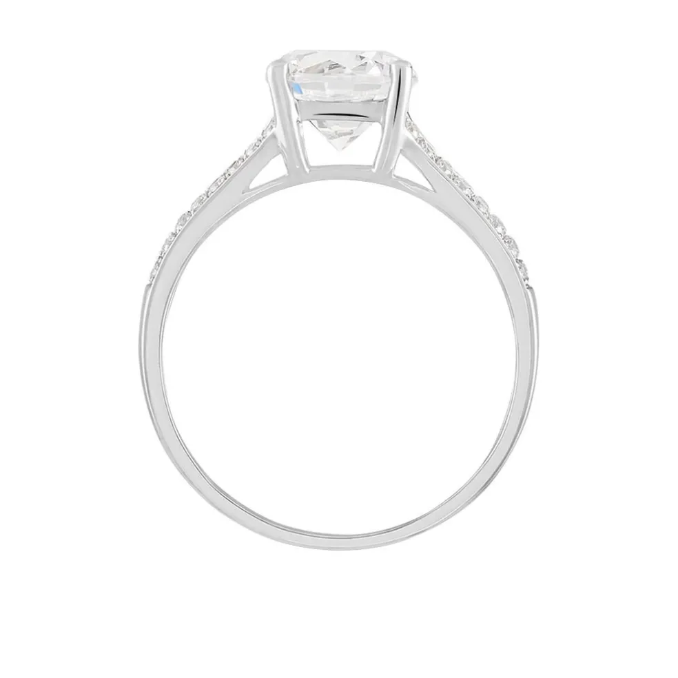 Solitaire Or Blanc 375/1000 Oxyde Central Et Corps De Bague Double Accompagne Oxydes