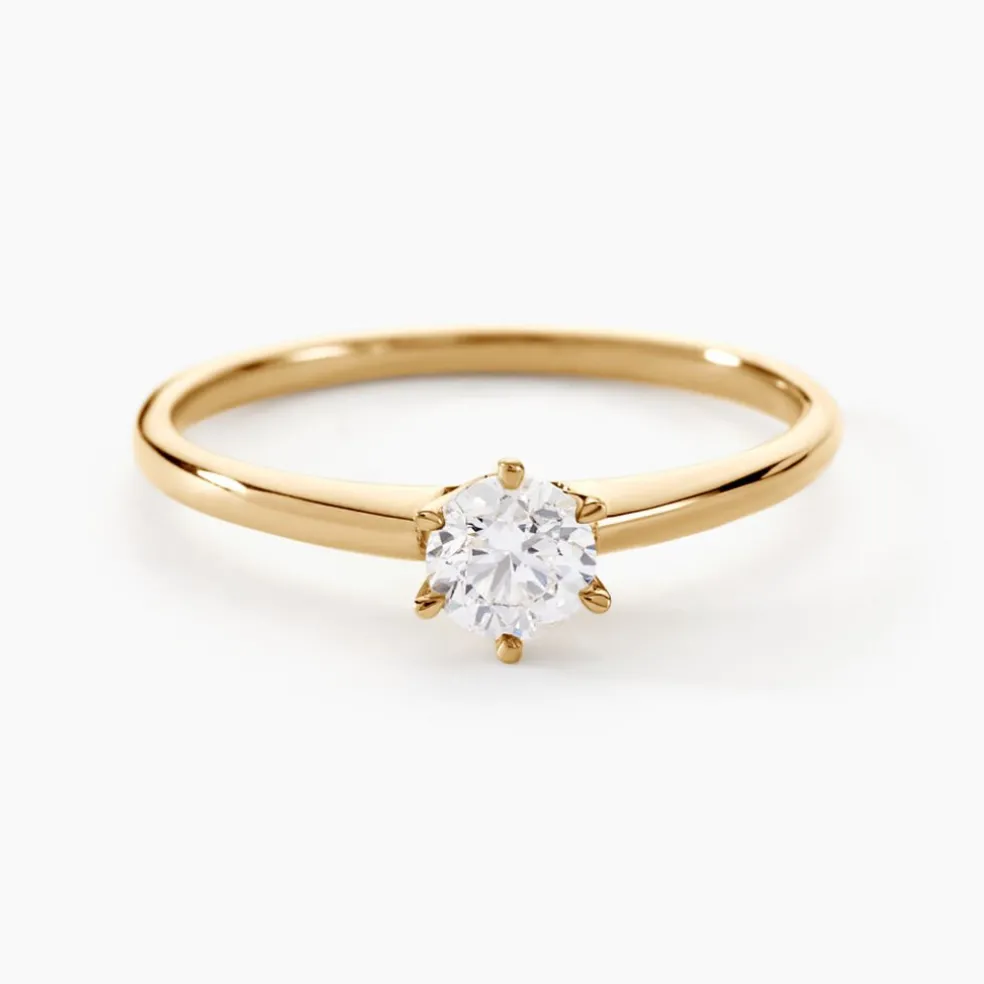 Solitaire Or Jaune 750/1000 Diamant 0.40ct Serti 6 Griffes
