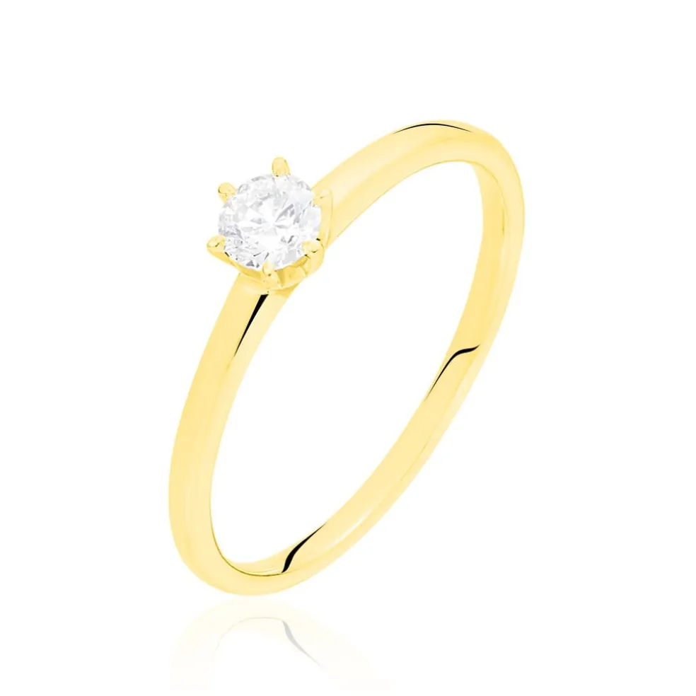 Solitaire Or Jaune 750/1000 Diamant 0.2cts Serti 6 Griffes