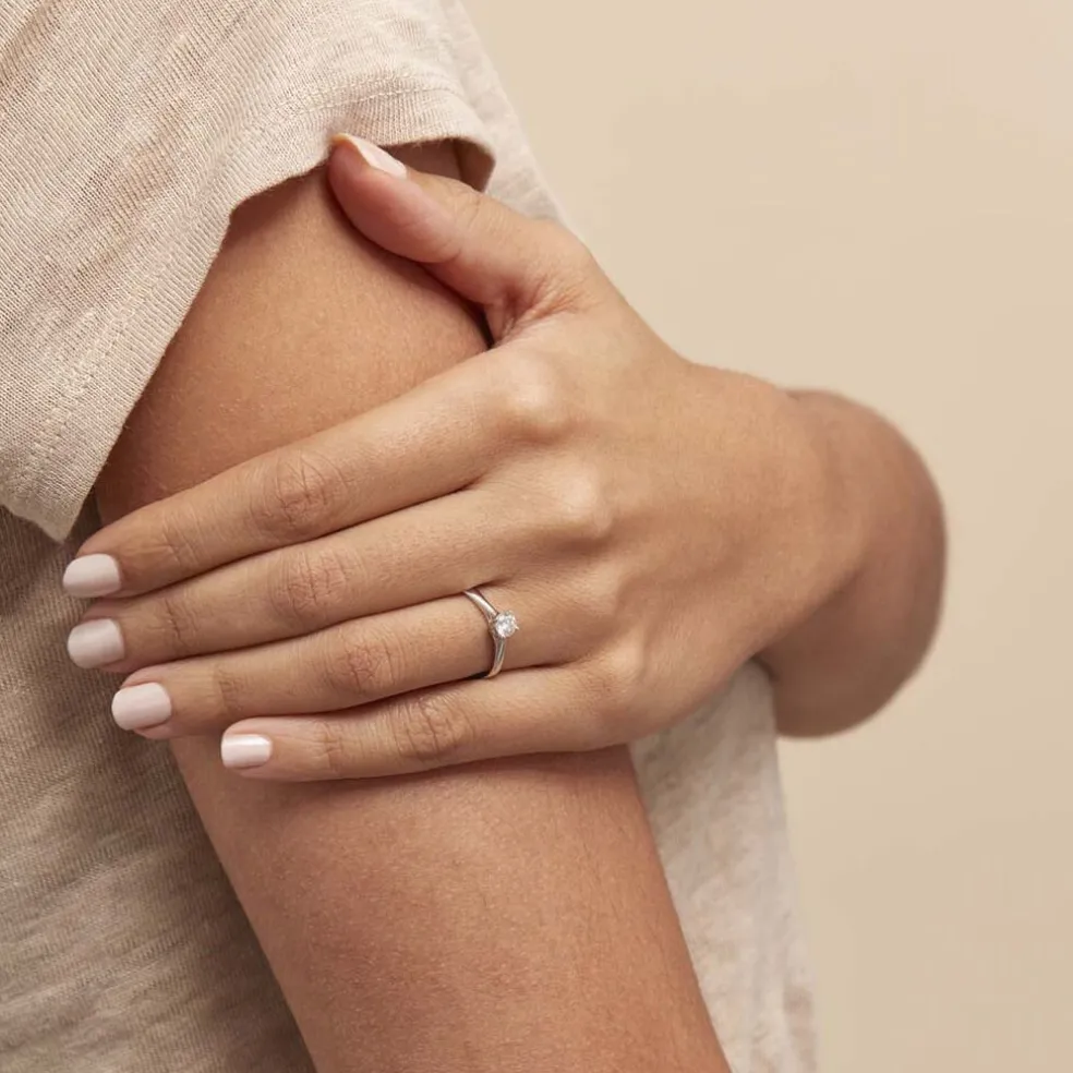 Solitaire Or Blanc 375/1000 Diamant 0.30cts Serti 4 Griffes