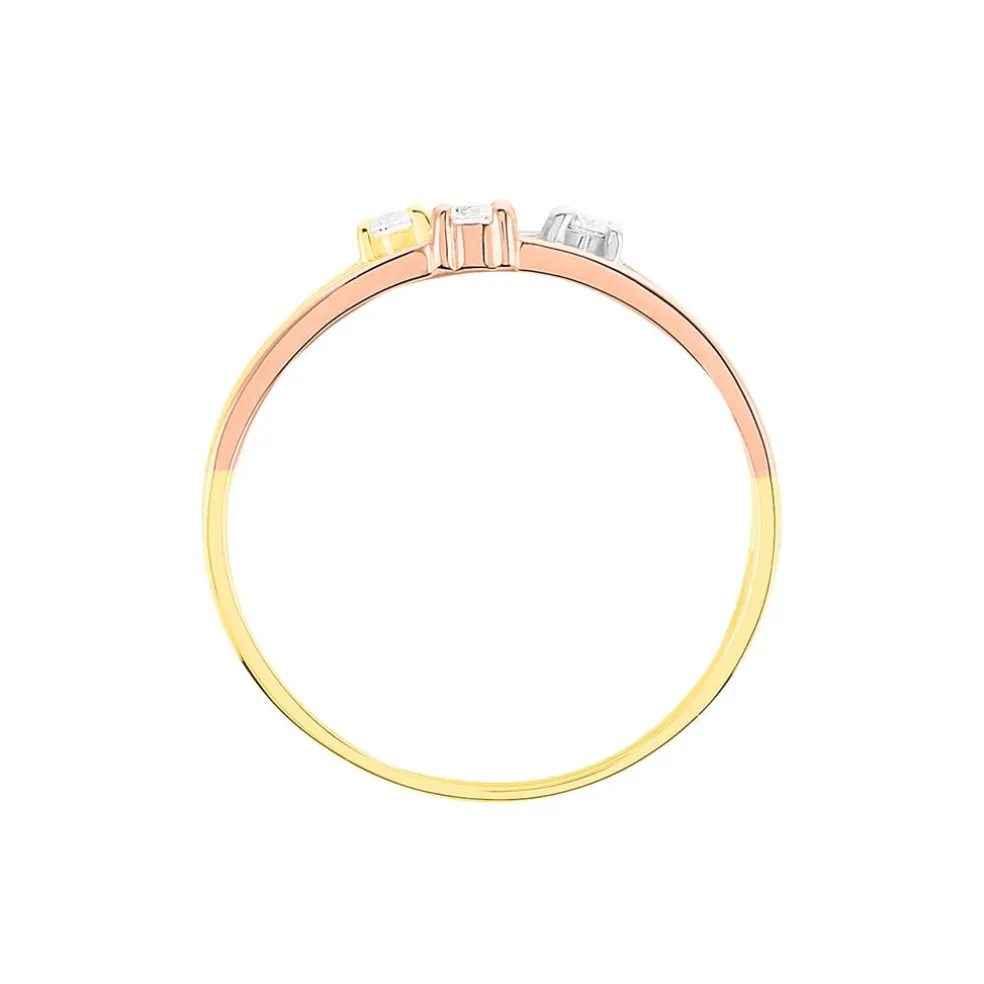 Bague Or Tricolore 375/1000 3 Anneaux 3 Diamants 0.1cts